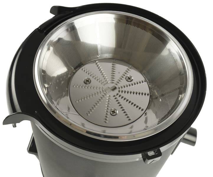 Фильтр-терка из нержавеющей стали — круглая и тоже очень аккуратная, смотрится безопасной, но острые края резцов на дне лучше мыть щеточкой, а не руками. Вставляется он прямо в моторный блок с переключателем скоростей, которых ровно две.