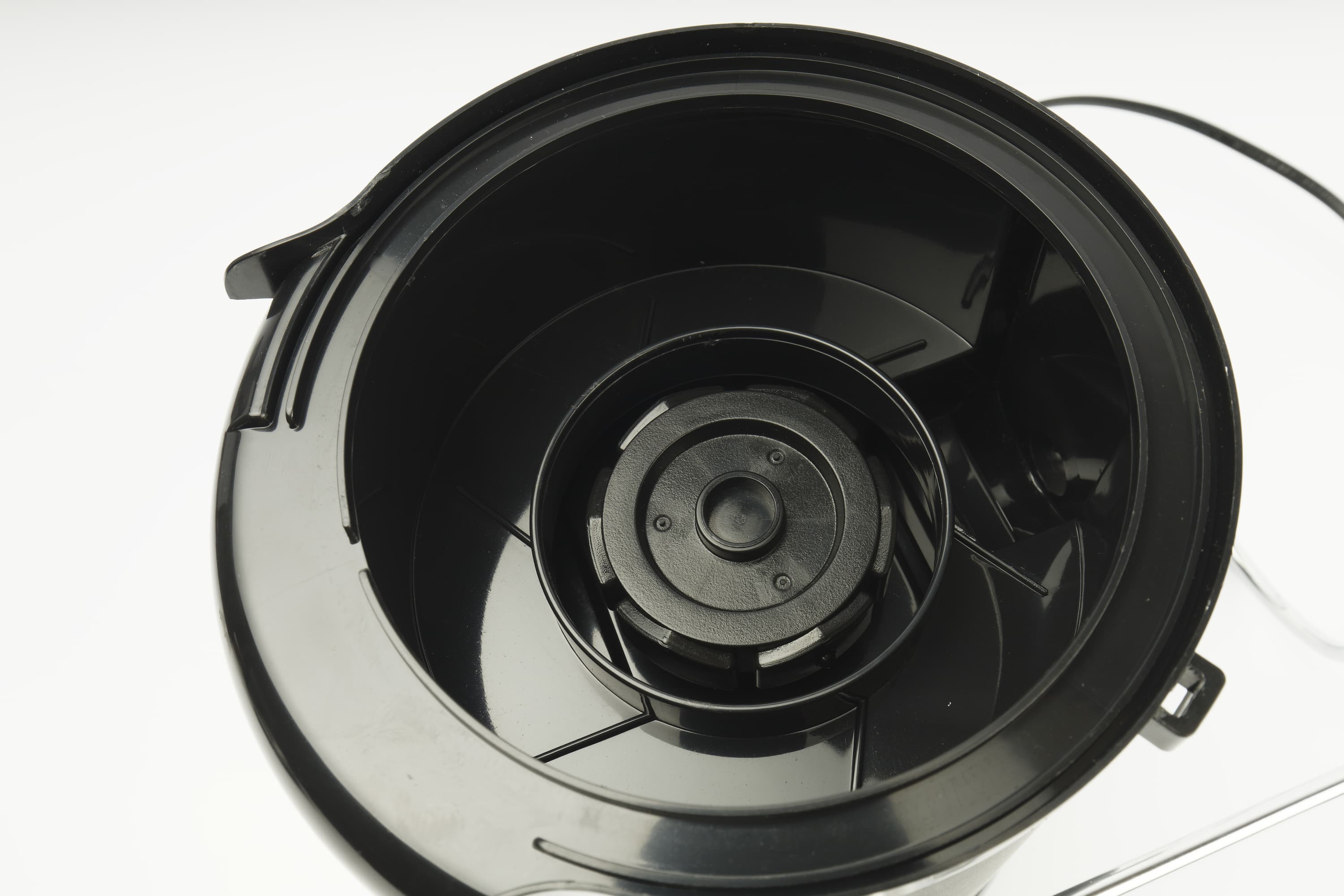 Всё в ней интуитивно понятно: как вытащить толкатель из загрузочной горловины, как опустить фиксатор и снять крышку. Фильтр-терку проще снять вместе с сокосборником, собственно держась за него и поднимая наверх. Чуть более прозрачный материал крышки позволяет частично наблюдать процесс и надежно защищает от брызг.