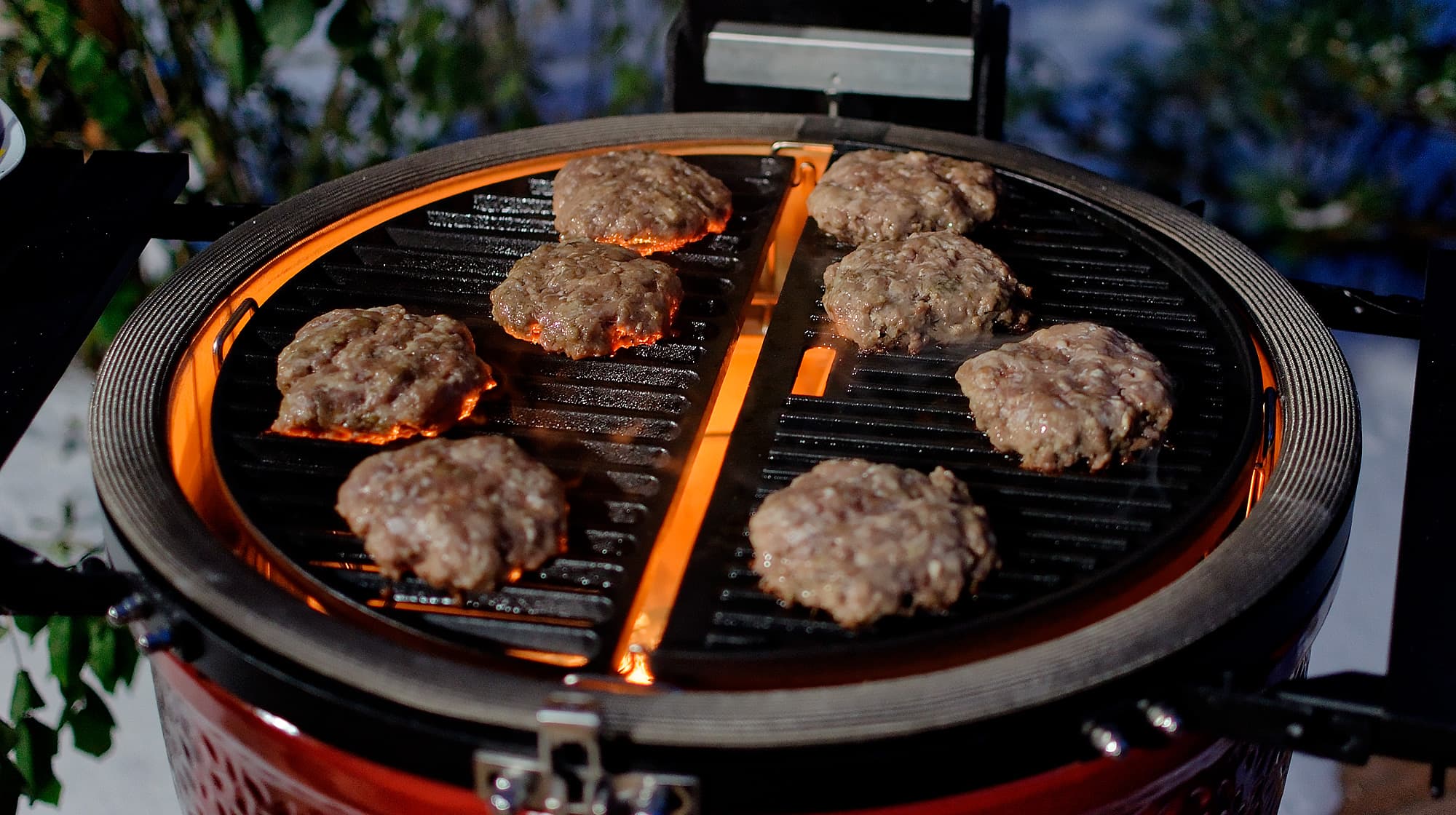 Но вспомнить, как готовили на угольном гриле, например Masterbuilt Kamado MCG 300S и Kamado Joe Classic II, тоже хочется. Покажем в картинках, ибо комментарии излишни, всё и так понятно. Готовили на морозе, работать приходилось очень быстро, так как внутренний термометр гриля показывал, что тепло быстро улетучивается при каждом открывании крышки, но затем так же быстро и набирается, благодаря жарким углям, хорошей тяге на холоде и толстой керамике пластин гриля.