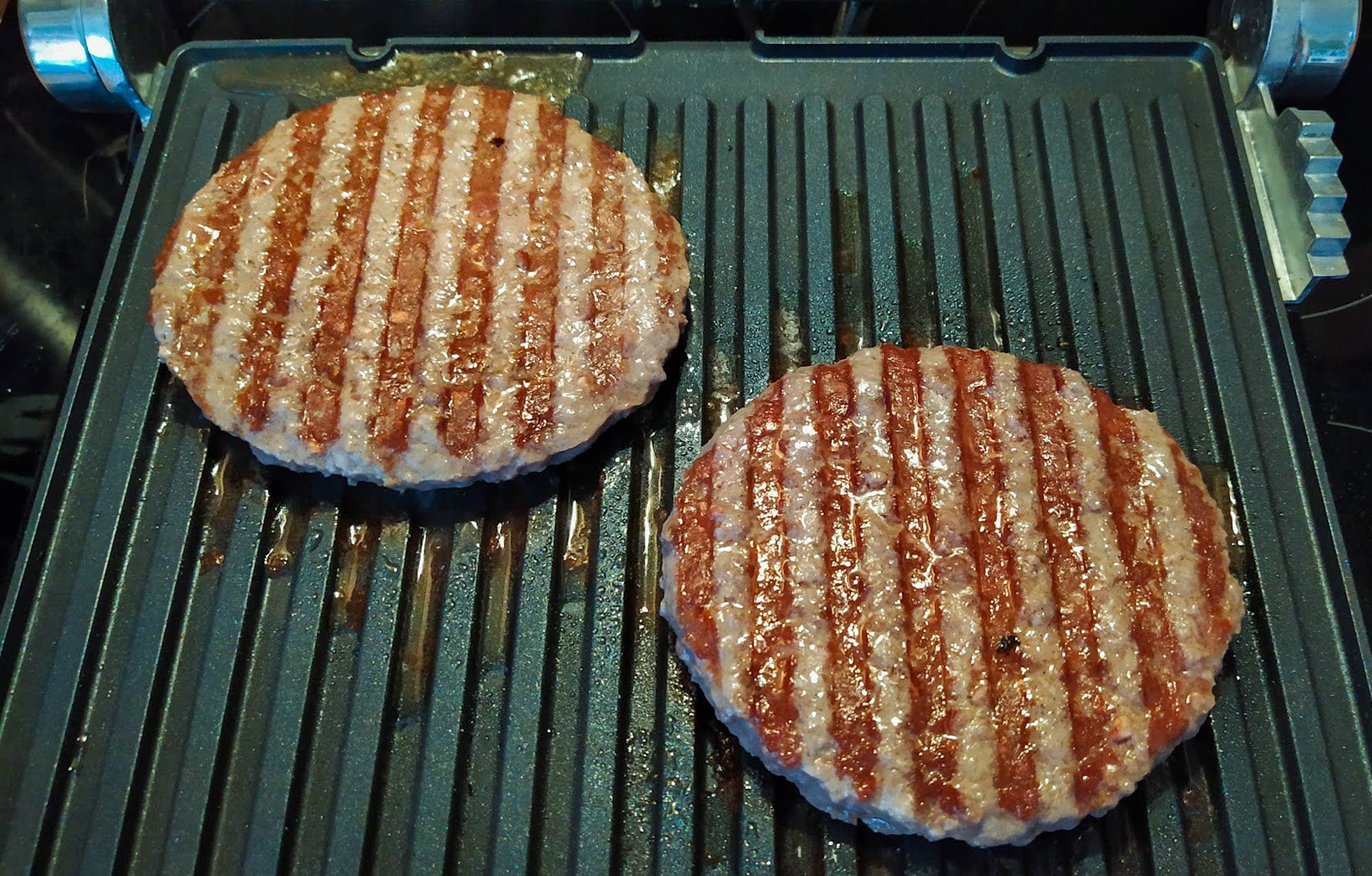 Для приготовления котлет-бургеров можно использовать гриль как в открытом положении жаровни, так и в контактном (закрытом) — всё зависит от желаемого результата, и с каждым конкретным прибором лучше поискать свой идеальный путь: положение пластин, температурный режим. Практика тестирования показывает, что не всегда режим, рекомендуемый производителем для бургеров, подходит, иногда надо увеличить температуру.