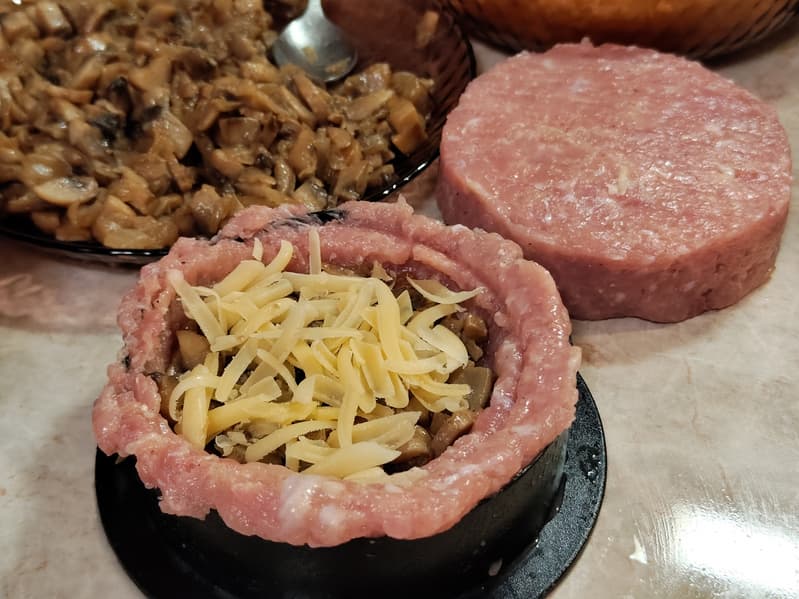 Тестировщики Garlyn Grind Pro, описали процесс использования бургер-пресса для приготовления зраз — а кто сказал, что нельзя их использовать в бургерах? Итак, надо смочить руки холодной водой, сформовать комок фарша, уложить его в большой цилиндр, в котором предварительно размещено дно. Немного прижав мясо пальцами, надавить прессом. В итоге получалось ровное красивое углубление, которое заполняли жареными грибами, сверху посыпа́ли сыром. Затем надо взять кусок фарша поменьше, сформировать лепешку и разместить ее сверху, снова придавив прессом — точнее, его крышкой большого диаметра. Всё происходит быстро, дольше описывать.