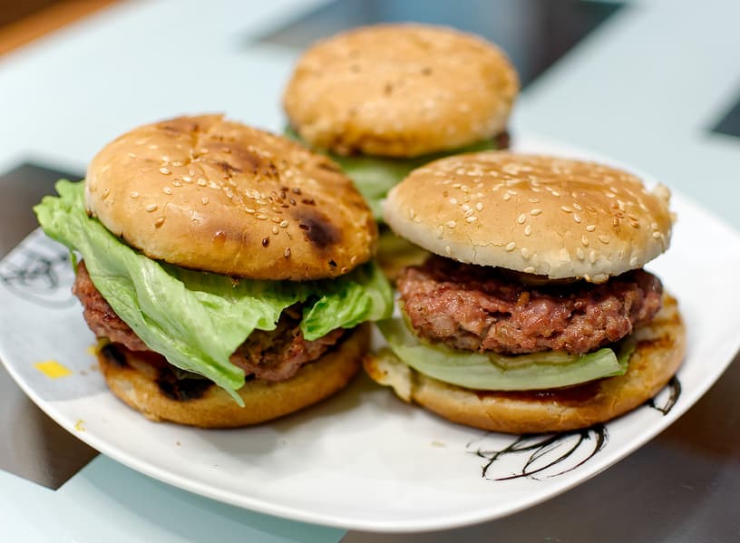По результатам первого теста для бургеров выиграла стейковая решетка: на ней вышло румянее и жарилось быстрее. Для чугунной поверхности найдем применение позже, хотя и в данном случае на вкус готовые изделия не отличались друг от друга.