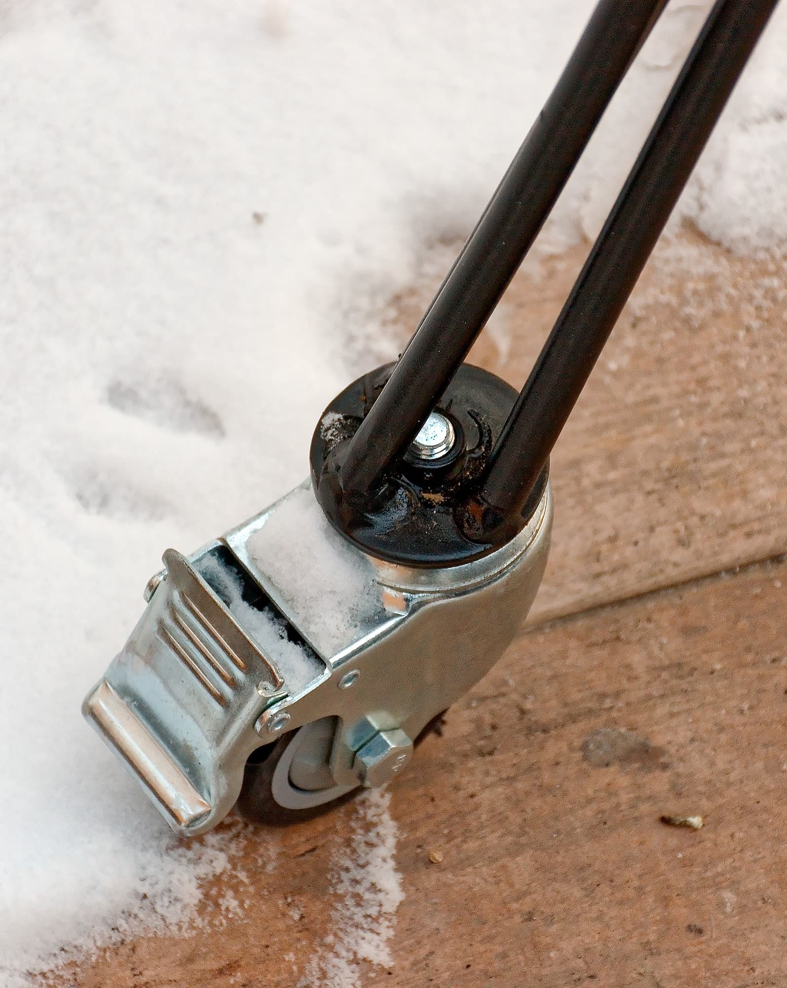 - Рычажками тормозов на передних колесах вполне комфортно оперировать ногами, но вот польза от тормозов зимой на заснеженном кафеле сильно снижается — колеса приобретают свойства полозьев санок. ;)