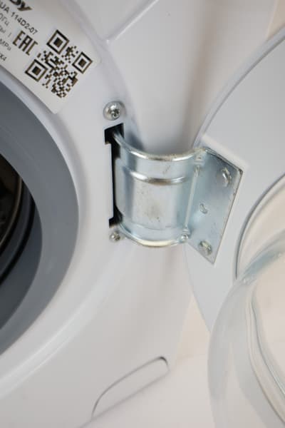 Конструкция крышки барабана показалась нам не слишком удачной: несмотря на стальные петли, которые так ценят многие наши читатели, замок люка может подклинивать. Изучив проблему, мы поняли, что причиной тому — передняя панель, к которой прикручены петли тяжелой стеклянной крышки. При малейшем перекосе слишком тонкий металл, из которого она сделана, деформируется, и замок теряет четкость работы. Проблему решило бы усиление этой стенки.