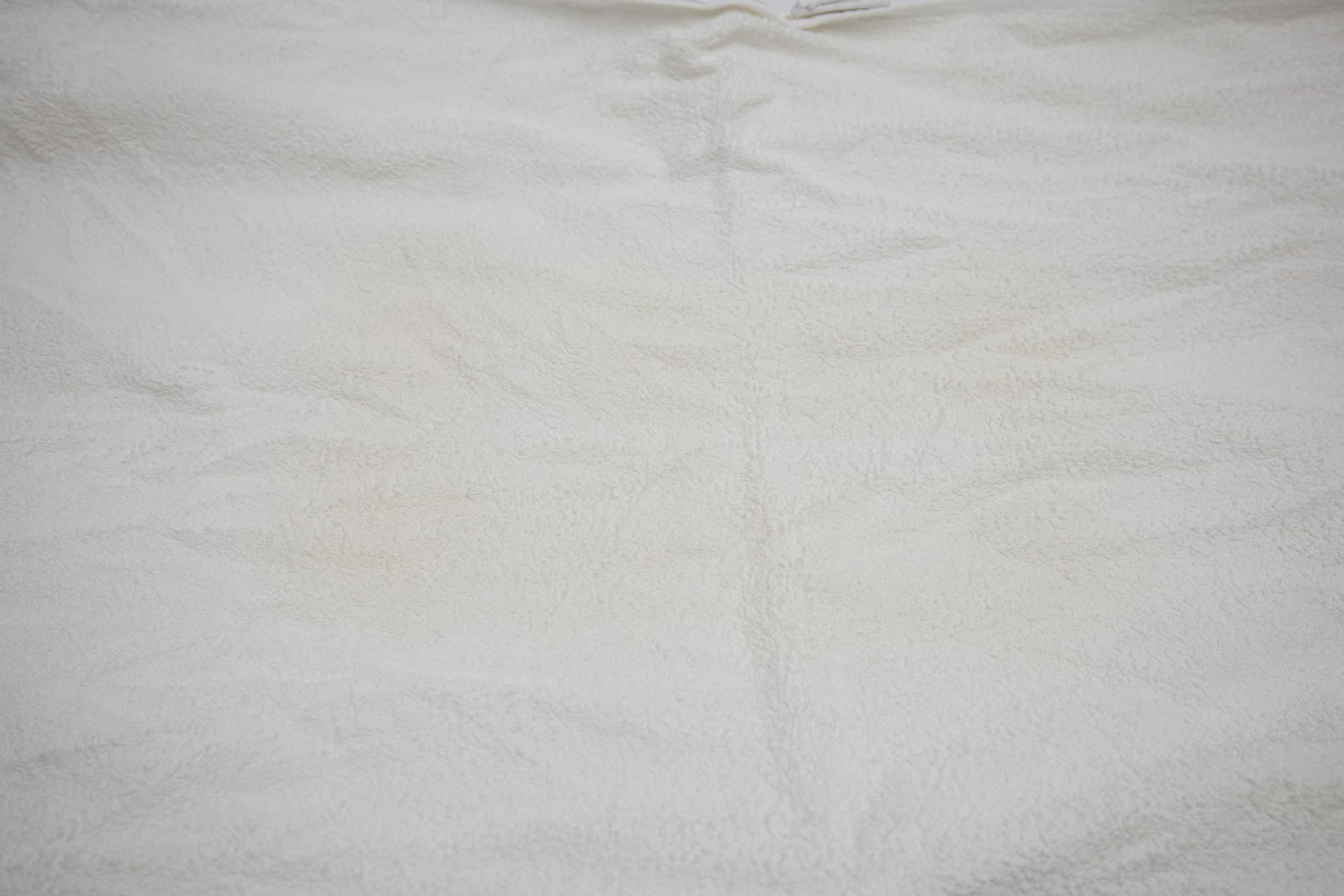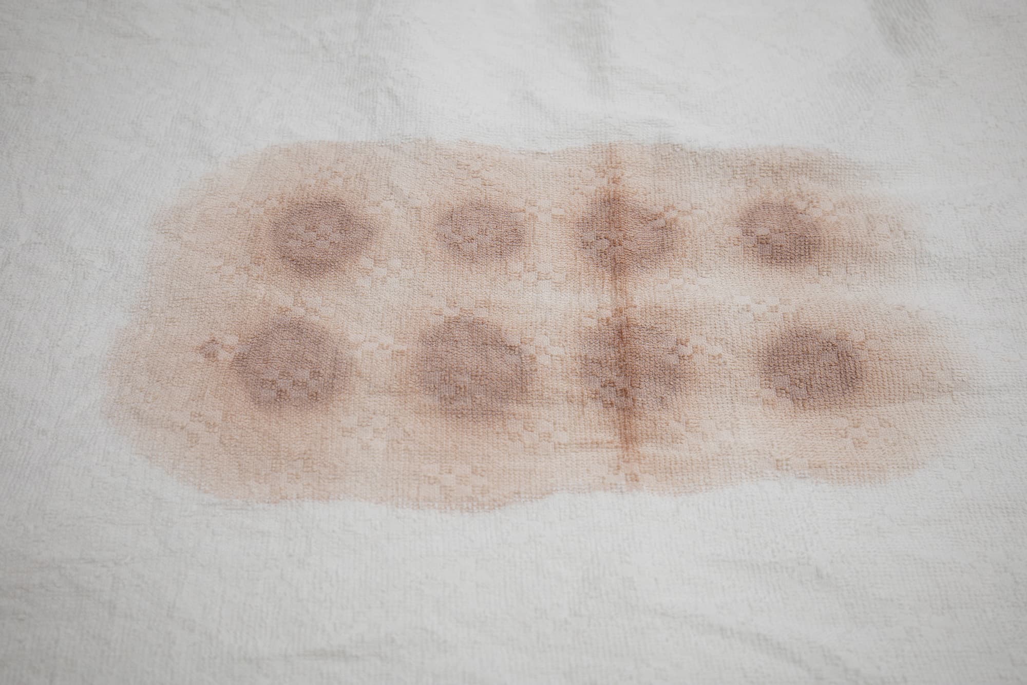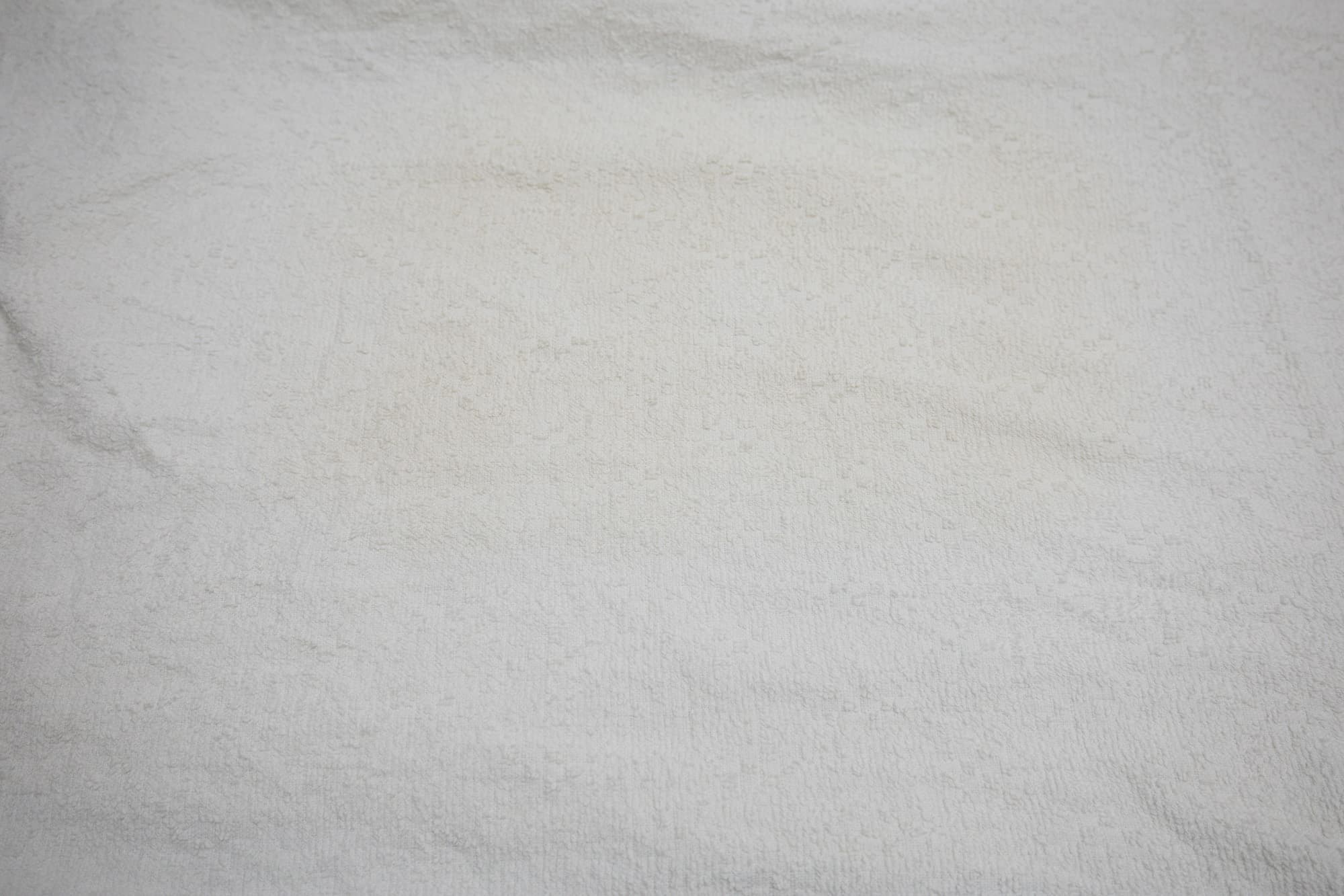 Чтобы избавиться от пятен, сохранившихся от этого и предыдущего тестов, мы еще раз постирали ткань, добавив отбеливатель.