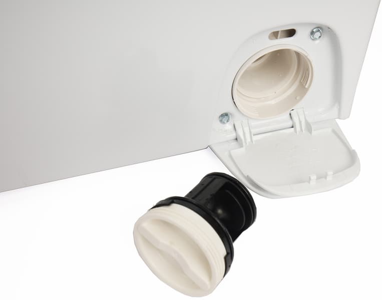 В остальном подключение прибора не отличается от аналогов: заливной шланг присоединяется одним концом к розетке холодного водоснабжения, другим — к штуцеру стиральной машины, а сливной шланг выводится в канализацию.