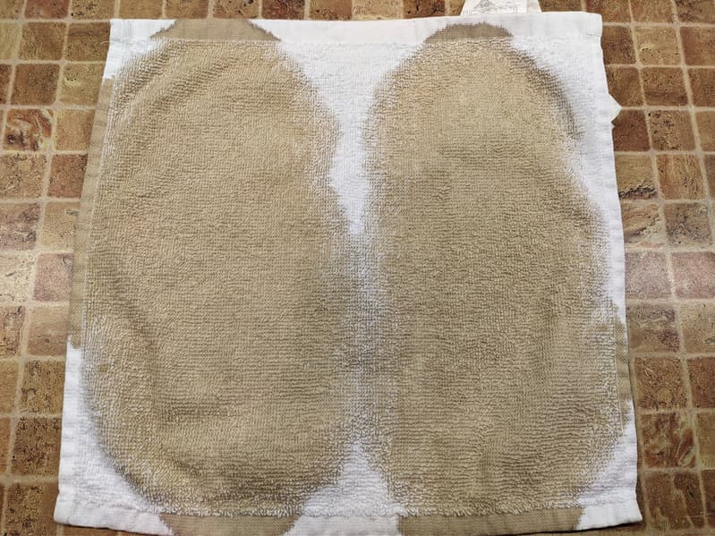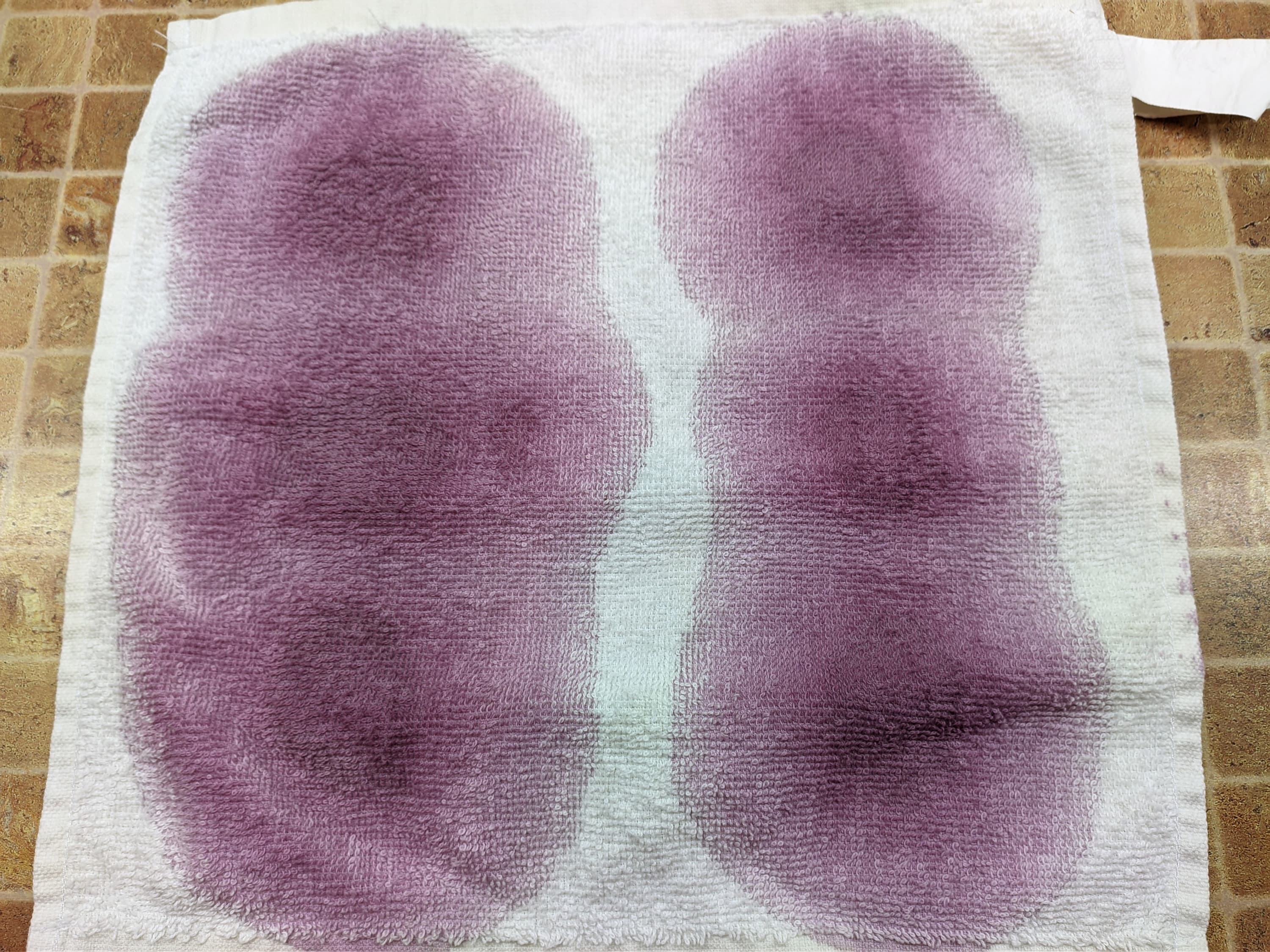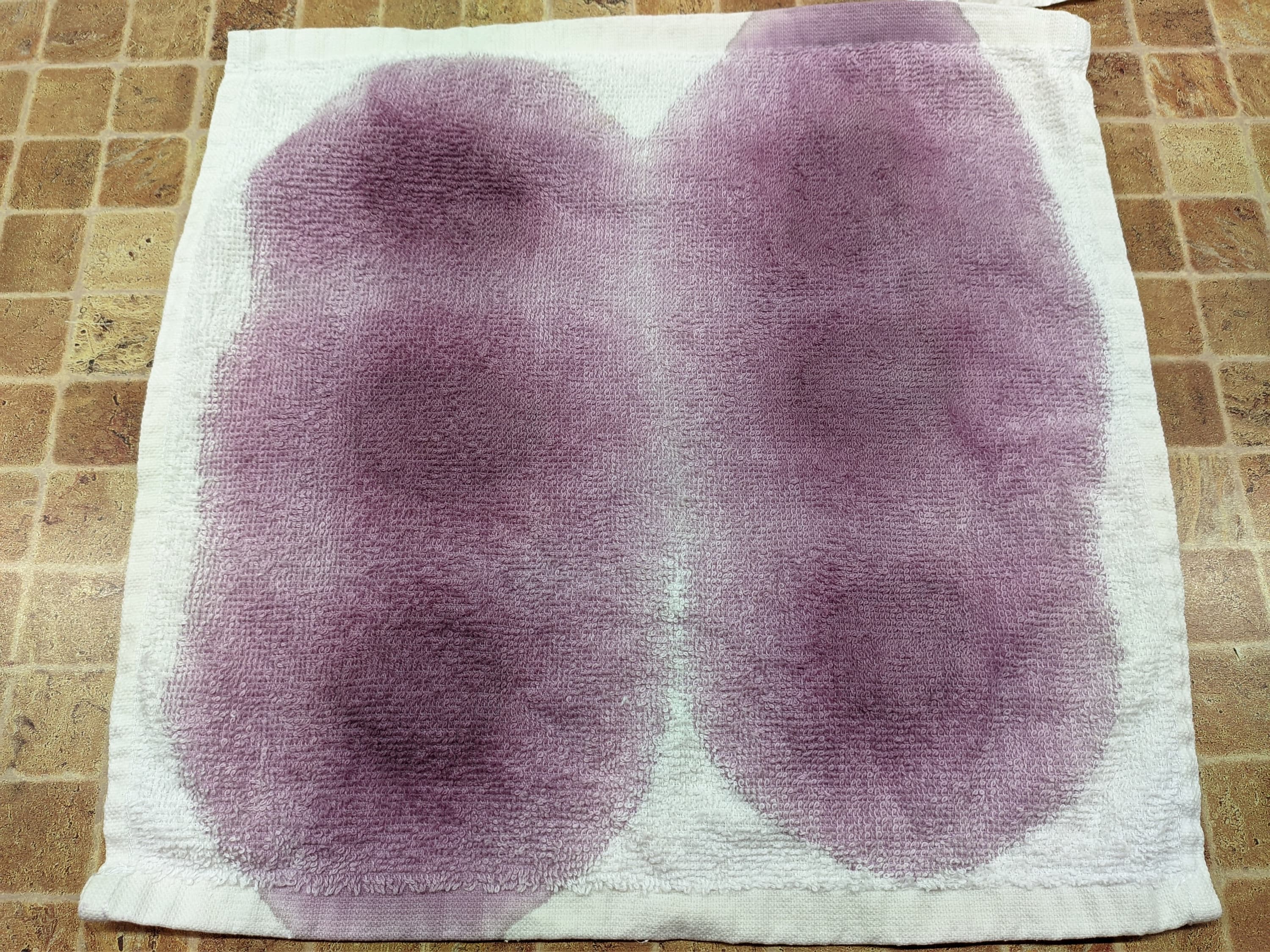 Пятна на полотенцах мы возобновили теми же субстанциями, что и в прошлый раз, и так же оставили сохнуть на сутки.