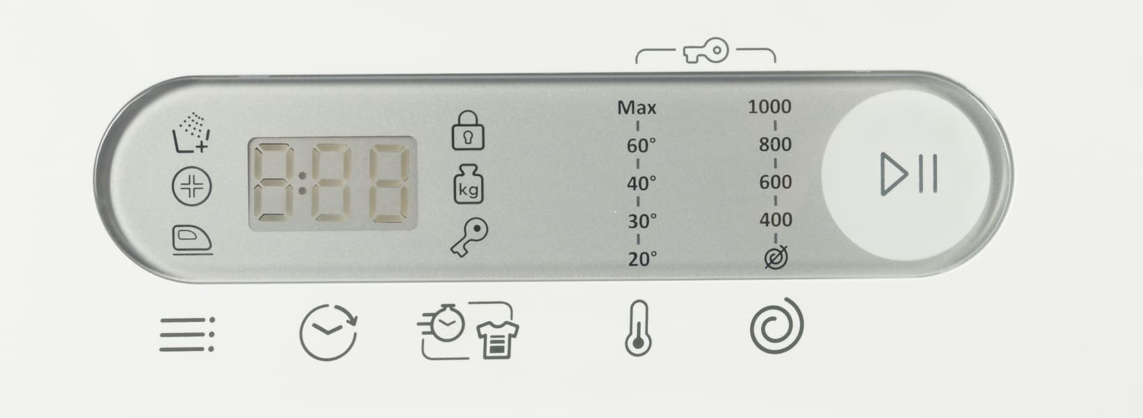 На программах, длительность которых не указана на селекторе, включается функция «Kg Check». С ее помощью машина оценивает количество белья, загруженного в бак, и соответственную его весу формирует длительность цикла.