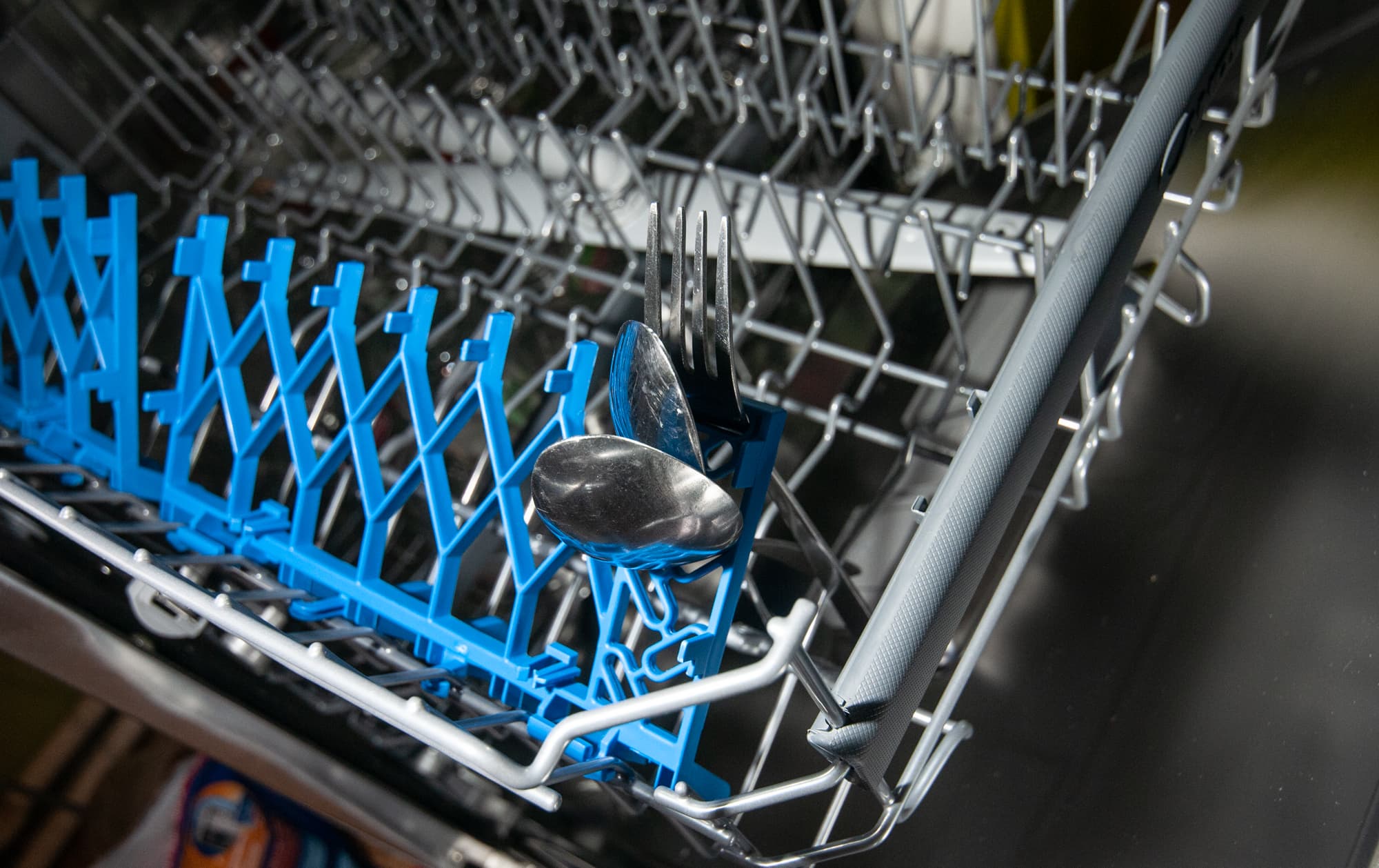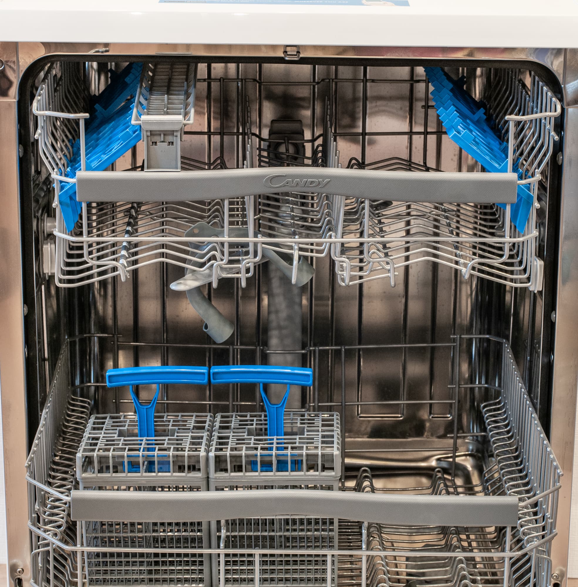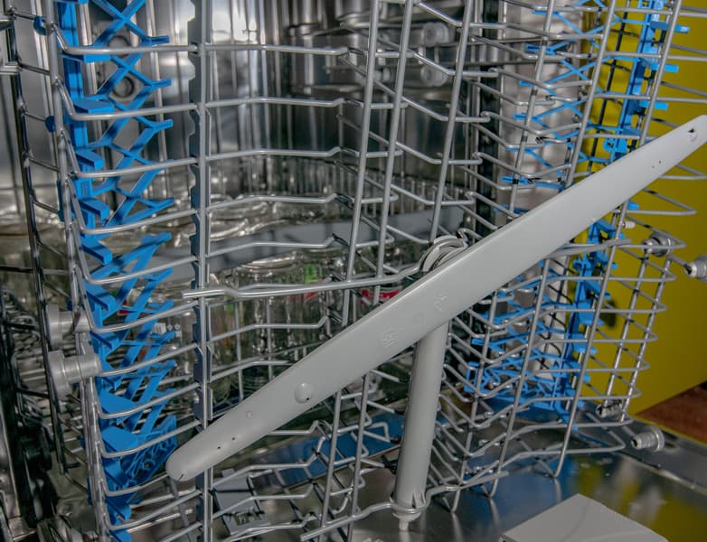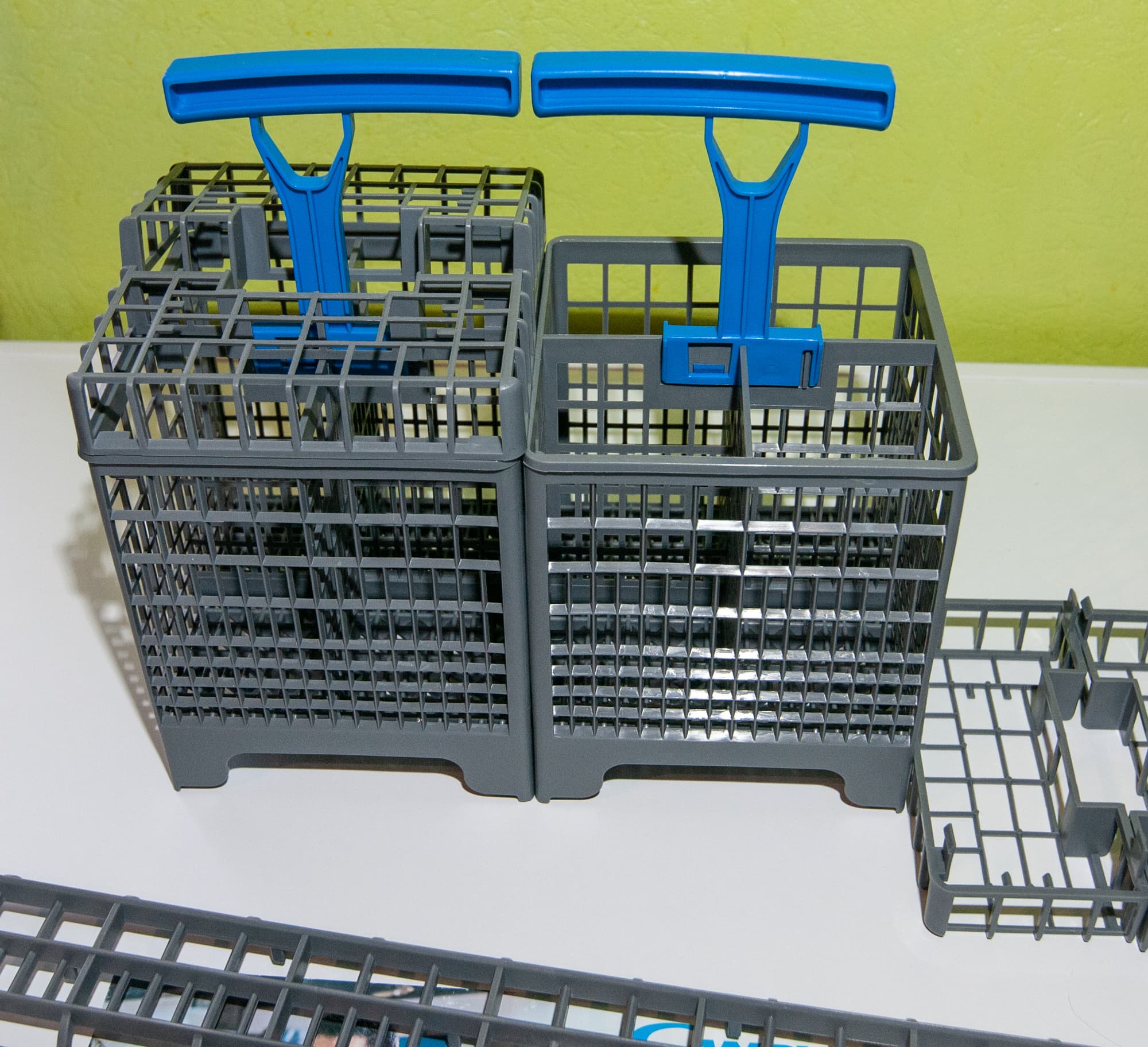 Из недостатков — неидеально справляется с помывкой глубоких предметов и сильнозагрязненных предметов, а также требует грамотного размещения приборов и посуды в корзинках.