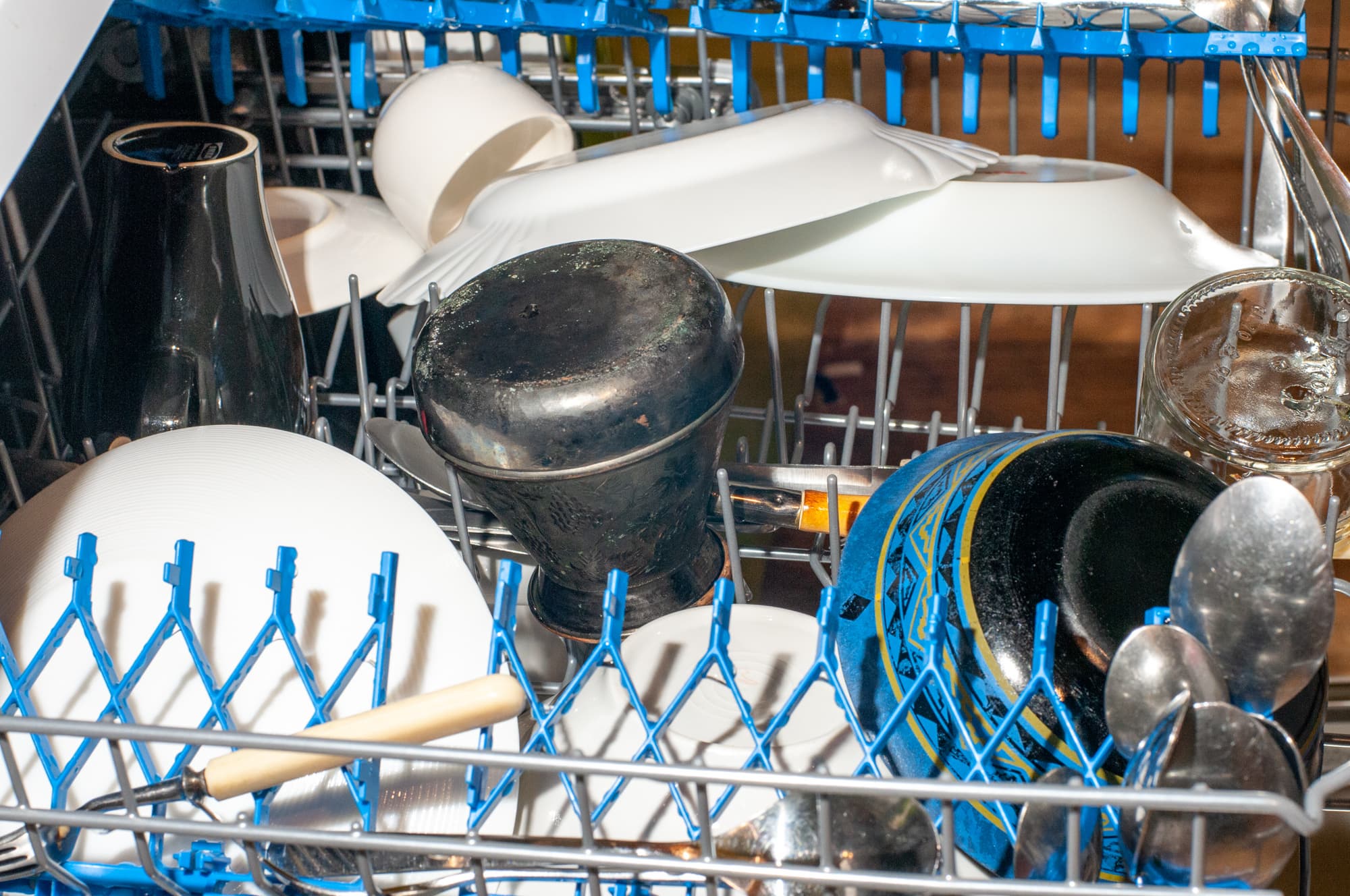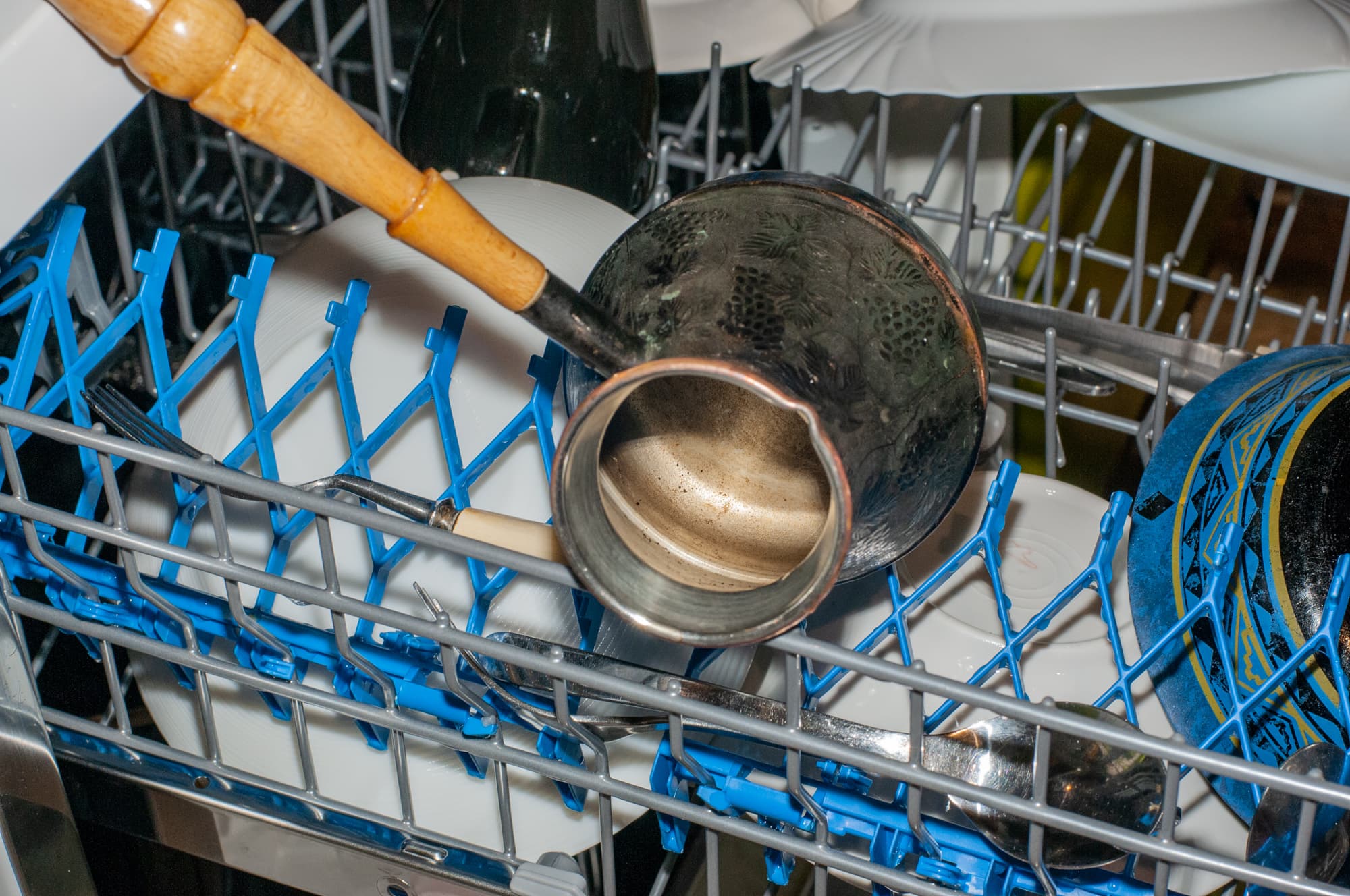Тарелки отмылись неплохо. Вилки и ложки нужно было укладывать лучше, в некоторых местах осталась пища. Джезва отмылась только снаружи, внутри в ней остались фрагменты кофейной гущи.