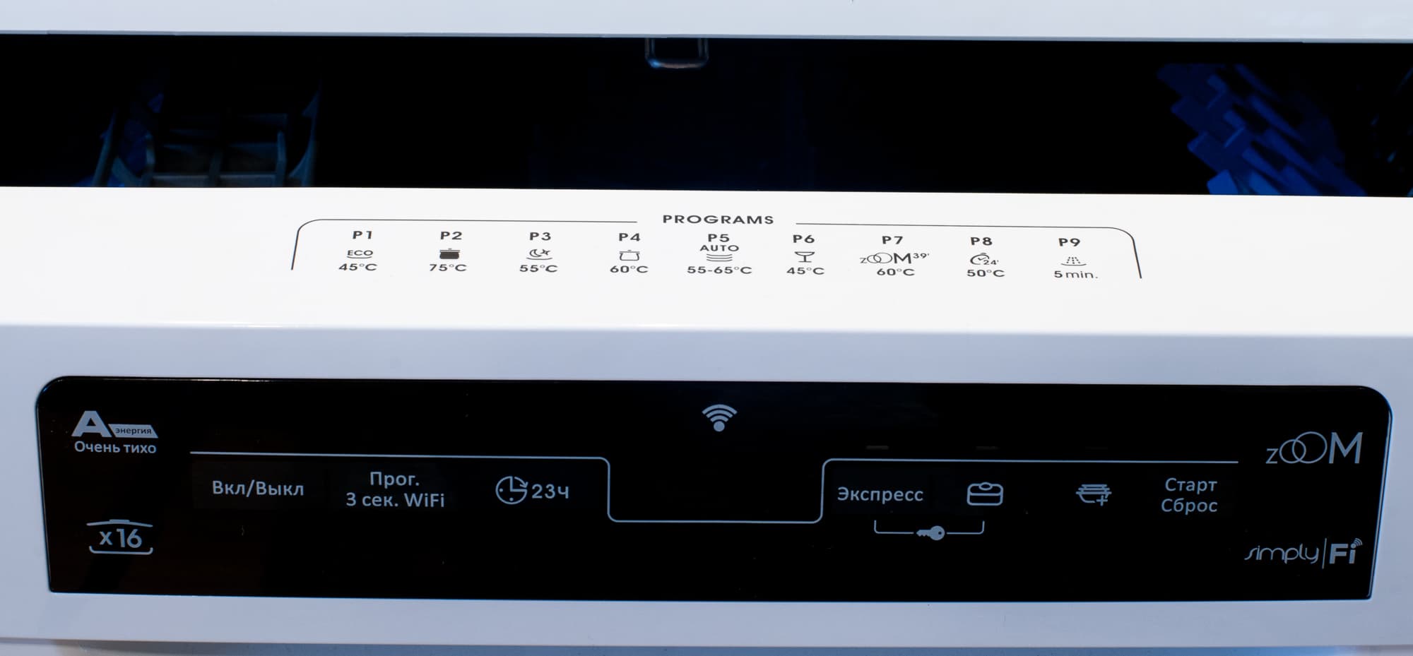Сверху на дверце над панелью управления расположены пиктограммы-подсказки с краткими характеристиками всех 9 программ.