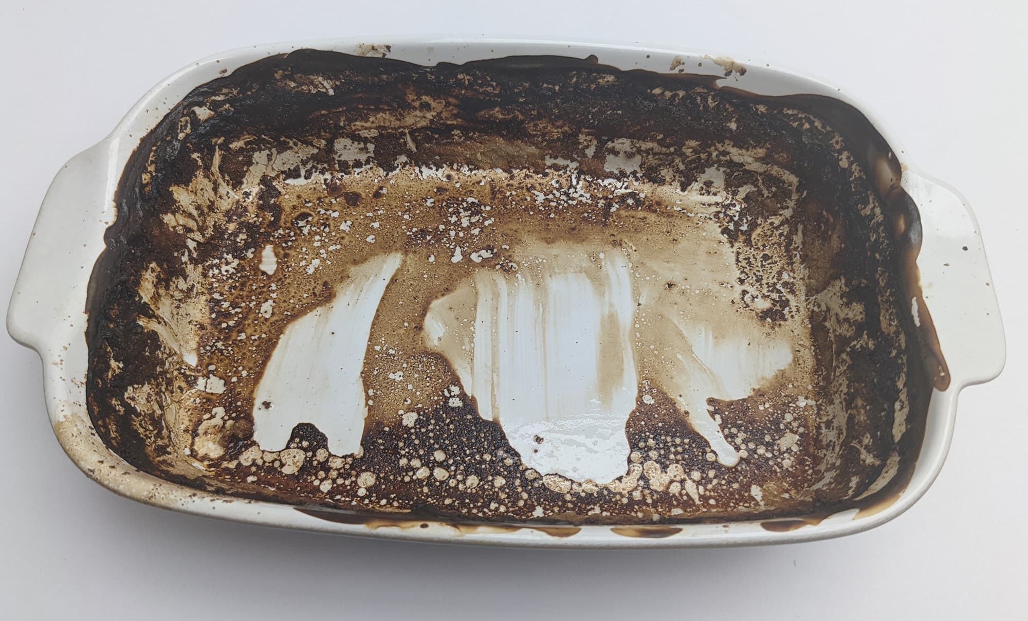 Форма отмылась неплохо, но на краях остались ошметки нагара.
