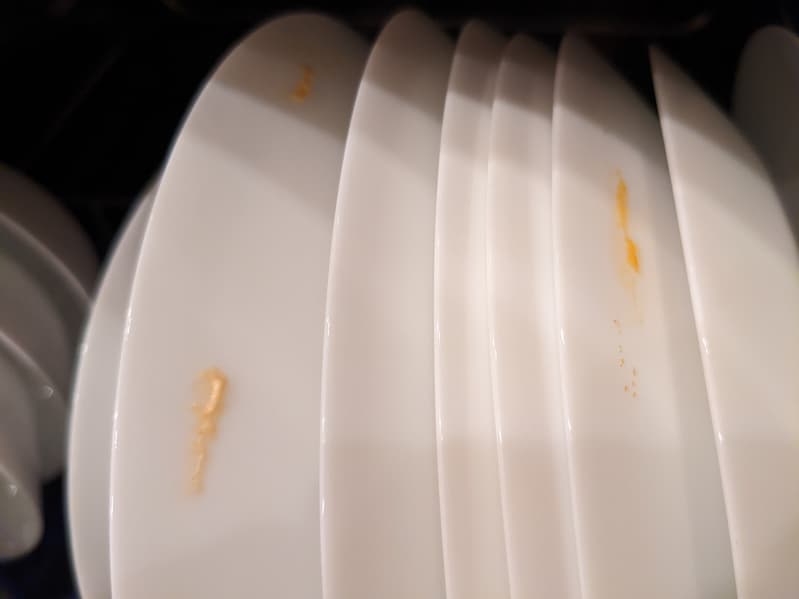 Но делать нечего, пора смывать все это. Для теста мы выбрали режим Eco — и он показал себя неплохо: посуда хорошо отмыта, следов жира не обнаружено ни визуально, ни на ощупь.