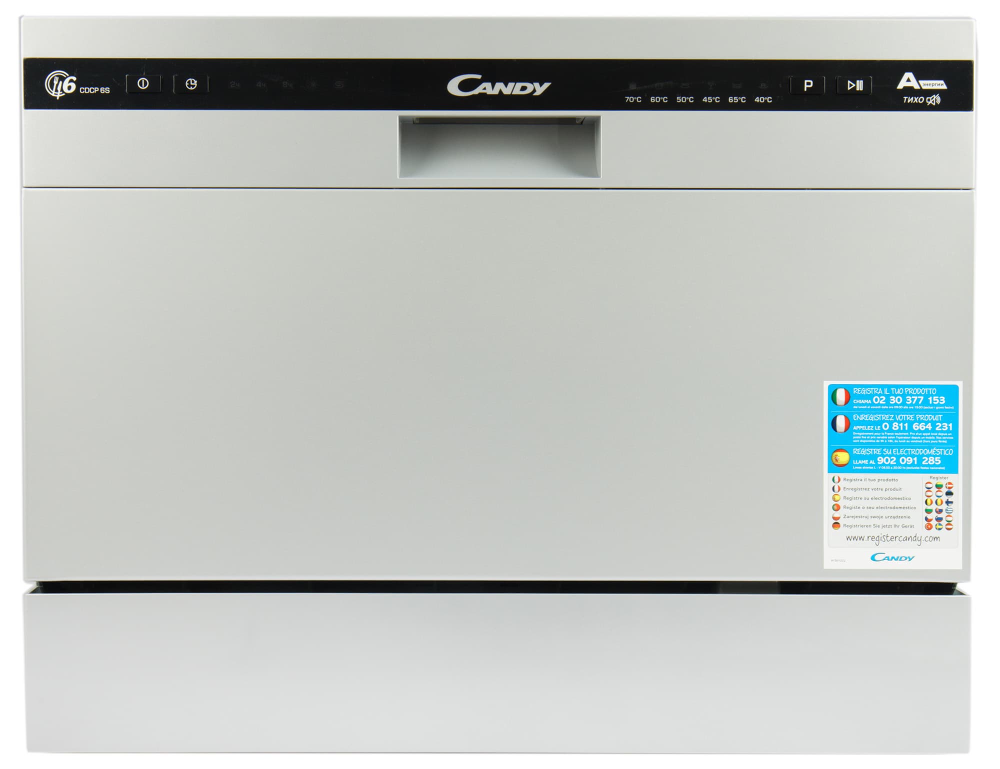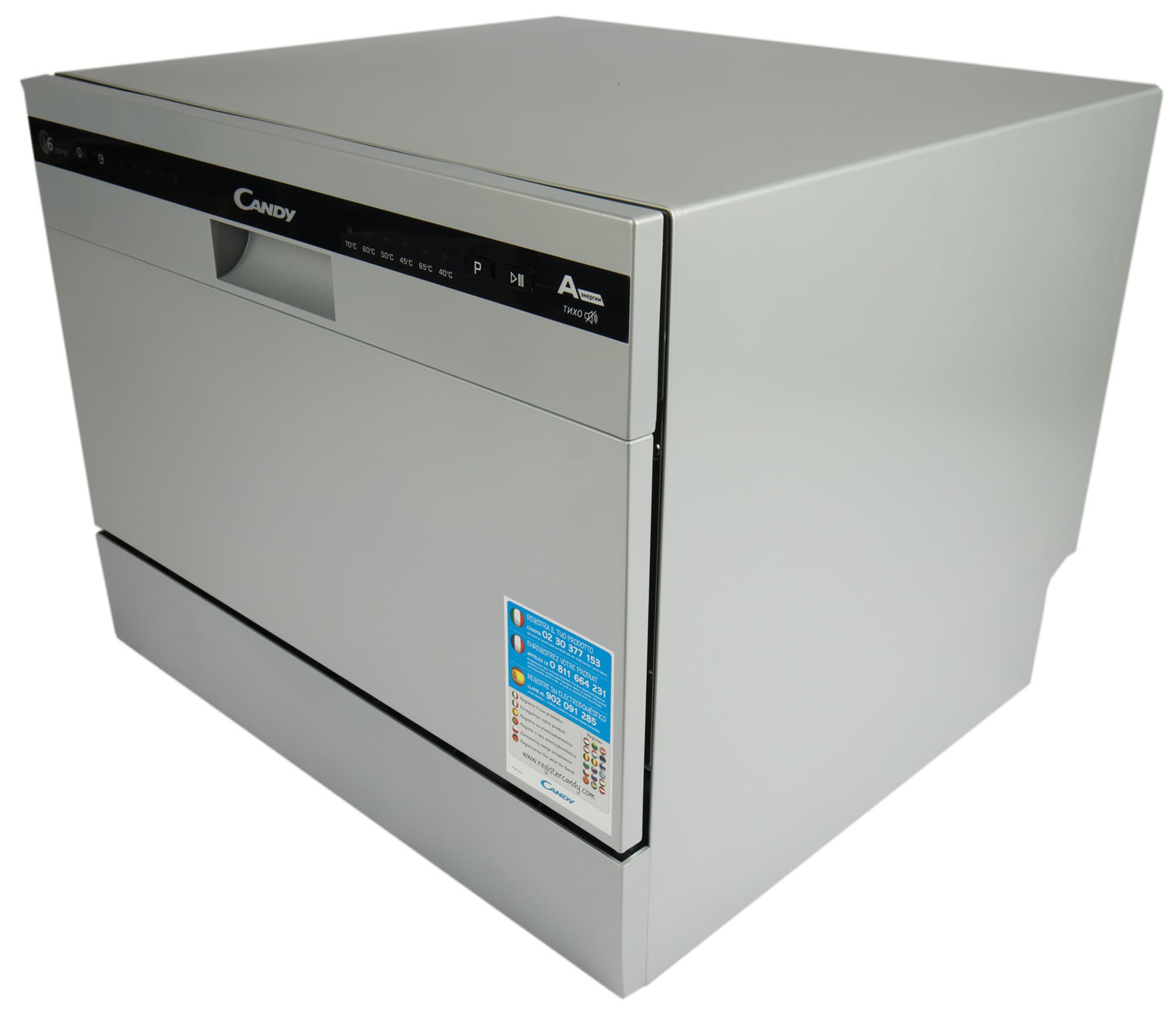 Посудомоечная машина Candy CDCP 6/ES-07 серебристо-серая. Размеры и компоновка у нее самые обычные для настольного подвида.