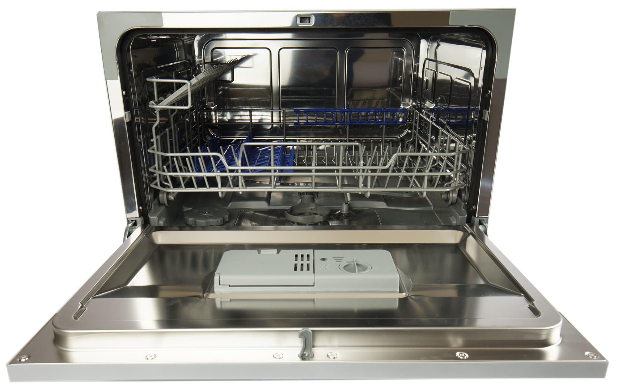 Объем посудомойки достаточен для семьи из двух-трех человек. Как и большинство настольных посудомоечных машин с единственным разбрызгивателем, эта модель чувствительна к неаккуратному размещению предметов в корзине. Также подобные модели несколько более громкие по сравнению с напольными. Но эти особенности вполне простительны, если в качестве альтернативы рассматривать мытье посуды вручную.