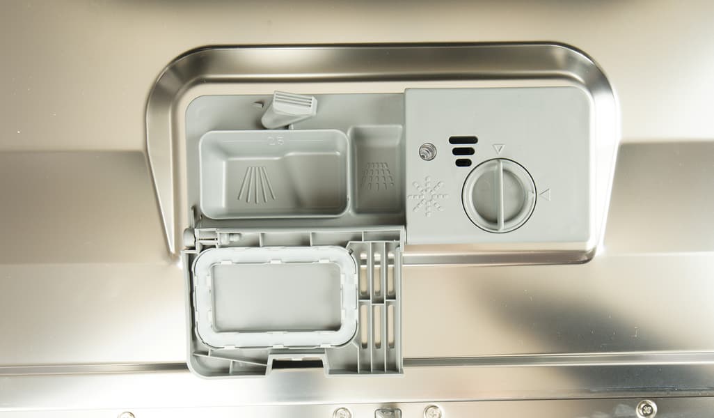Если мы говорим про заботу о посудомойке, то имеем в виду не только ее чистку, но и своевременное пополнение резервуаров с солью и ополаскивателем.
