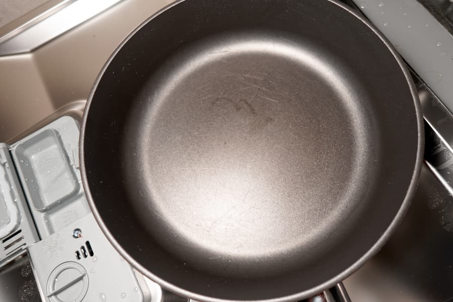 Мы испекли яблочный пирог в форме для кекса, достали и дали остаткам теста на форме присохнуть как следует. Затем помыли форму на режиме ежедневного мытья (90 минут, 65 °C).