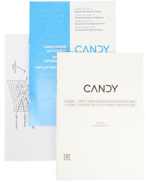 - руководство пользователя, гарантийный сертификат, краткой руководство по монтажу