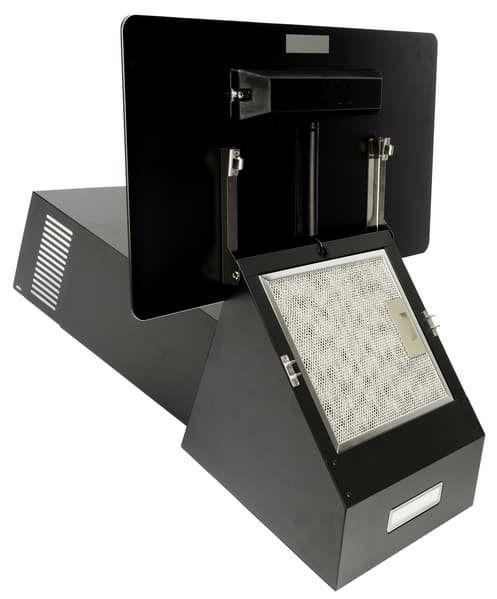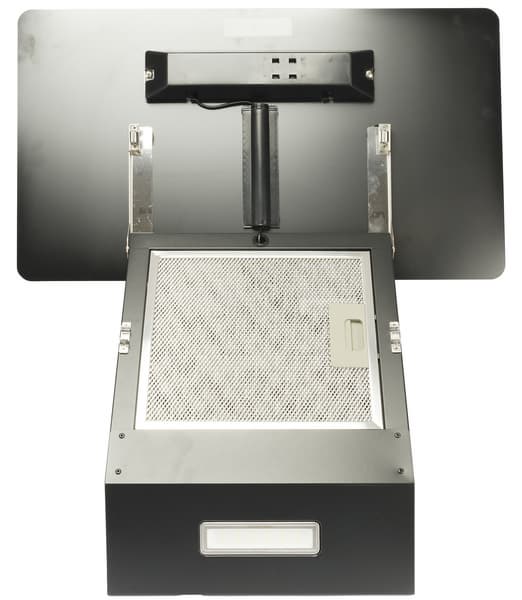 Если вытяжка не подключена к шахте вентиляции и используется в режиме рециркуляции, на его торцах следует разместить угольные фильтры, задерживающие жир, запахи и пыль. В данной модели они входят в комплект поставки.