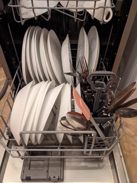 Все столовые приборы в нижней корзине отмылись прекрасно, аж скрипят.