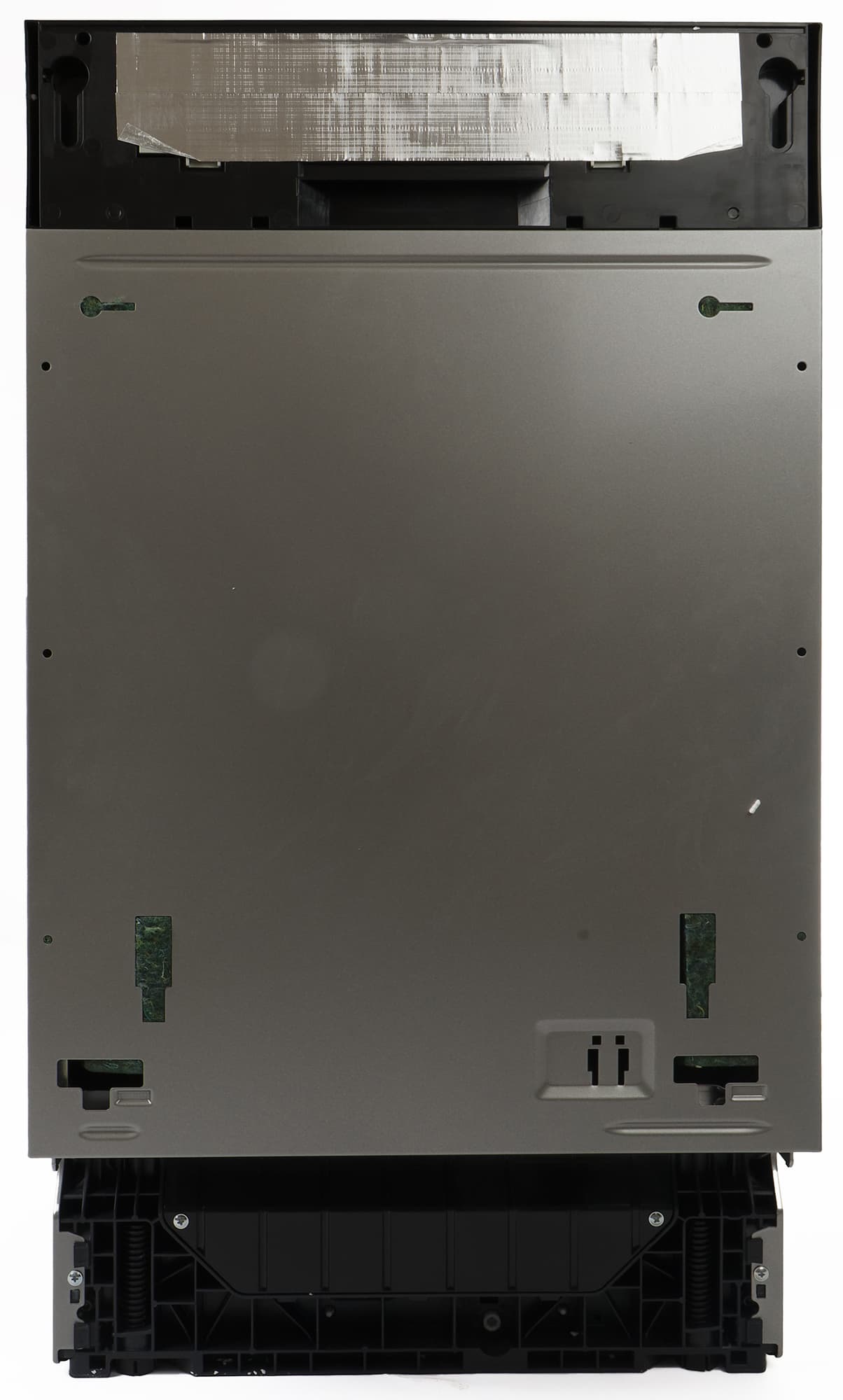 Внешне Candy CDIH 2D1047-08 не отличается от большинства полновстраиваемых посудомоечных машин: передняя, задняя и боковые ее панели сугубо технологичны и лишены каких-либо украшений. Дверца машины снабжена отверстиями для крепления мебельного фасада и ручкой-нишей, облегчающей открытие прибора до полного встраивания.