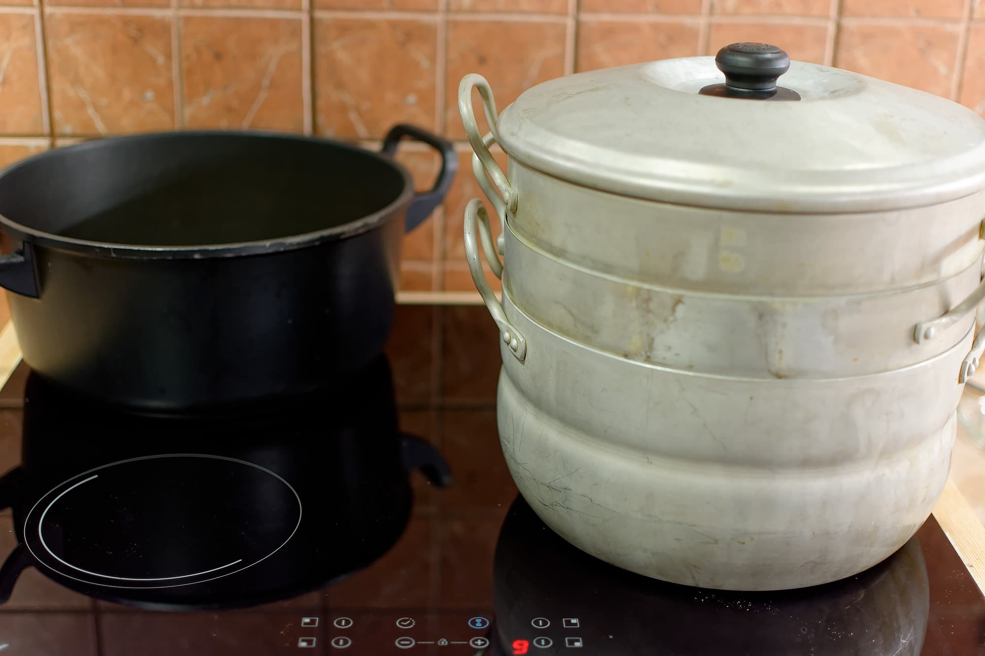 Манты мы купили готовые: здесь цель не слепить это прекрасное блюдо, а сварить его. С немалым удовольствием откопали мы на антресолях тестлаба старую советскую мантоварку: как-как наша варочная поверхность работает с алюминием, да еще и большого диаметра?