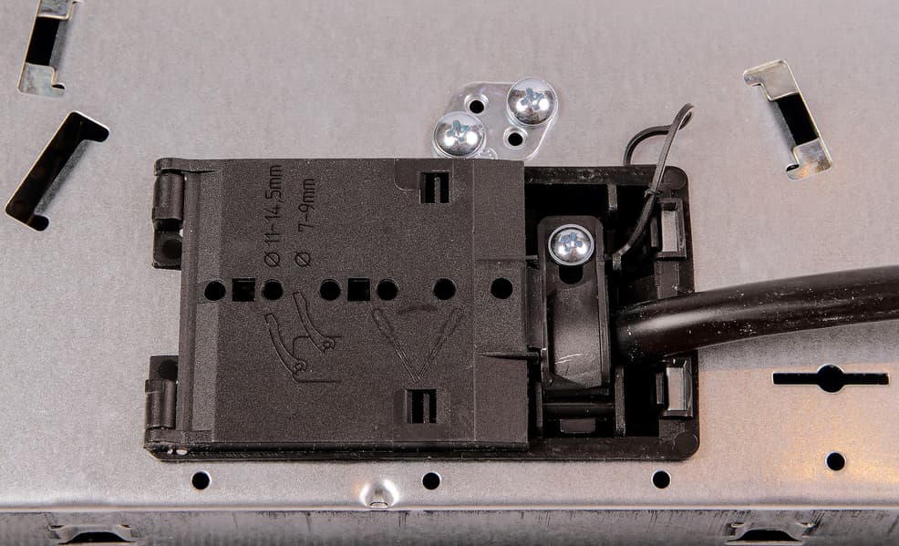 С тыльной стороны все выглядит тоже довольно просто: электрический кабель уже подключен к панели, но на его конце — не вилка, а три оголенных провода.