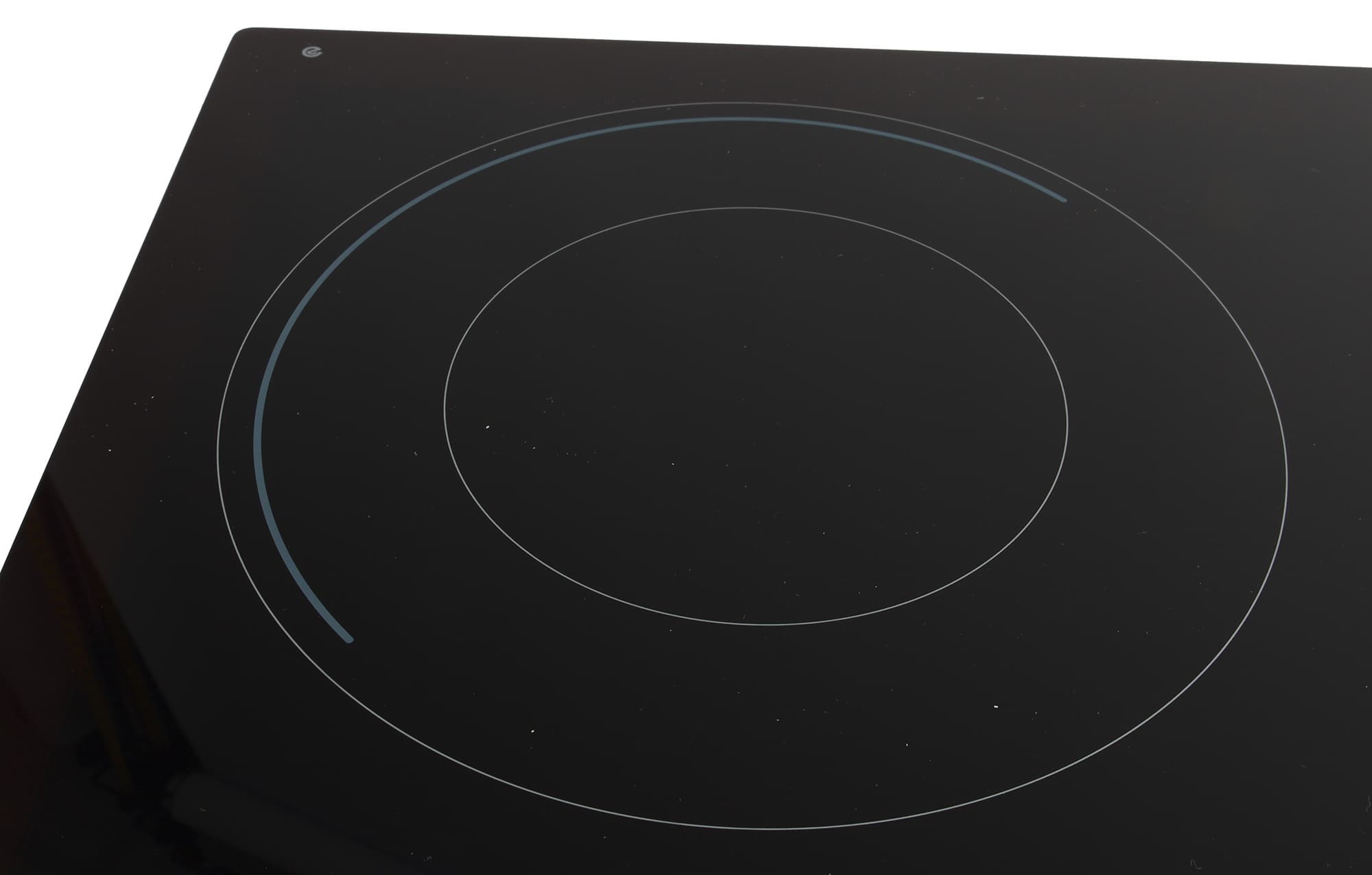 Эта полноразмерная модель оснащена четырьмя конфорками Hi-Light, одна из которых имеет двойной контур, сенсорным управлением с 10 уровнями нагрева, а также функциями блокировки управления и таймера.