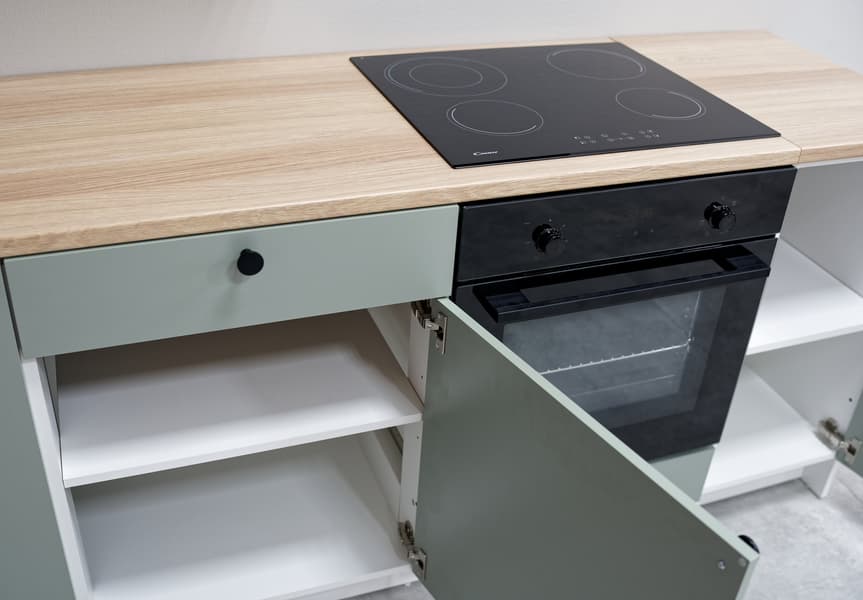 Дополнительно к панели (и духовому шкафу, обзор которого выйдет чуть позже) нам представили новинку в ассортименте компании: модули для модульных кухонь Candy ModulE. Позиционируются они как недорогое решение, которое можно будет приобретать в комплекте с техникой Candy, полностью с ними совместимой.
