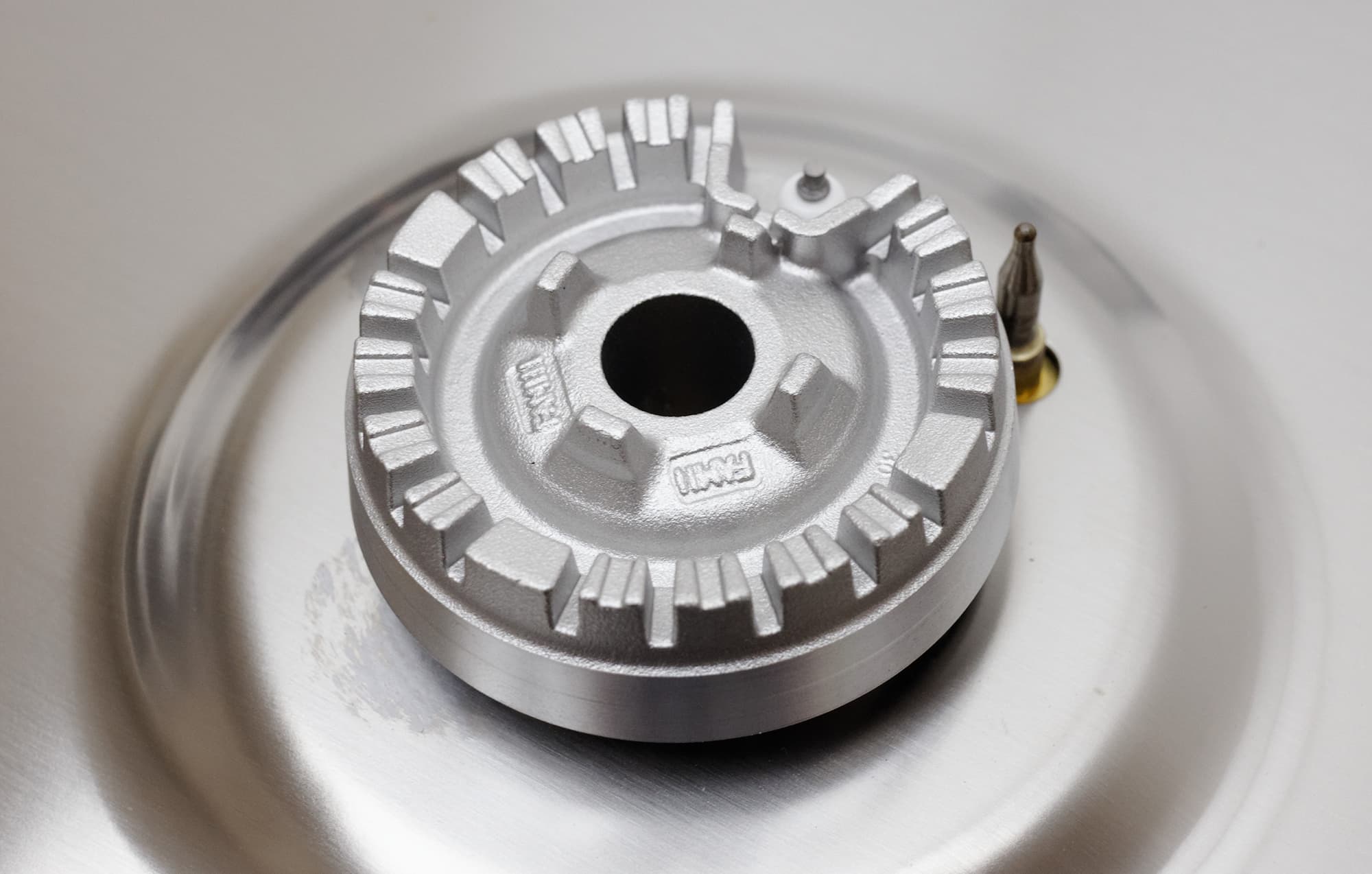 Самая большая конфорка имеет форму «двойная корона», что позволяет достигать мощности 4 кВт с большей эффективностью по сравнению с конфоркой традиционного строения.