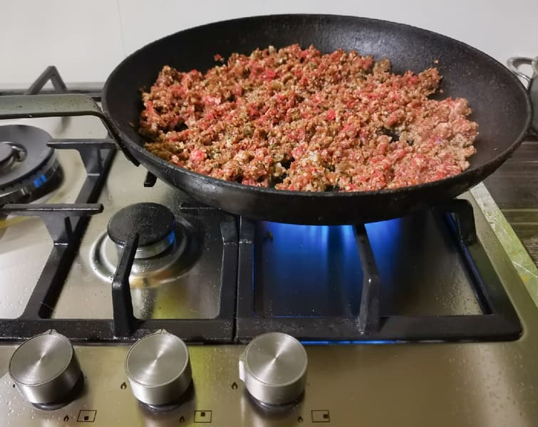 Фарш обжаривали на сковороде диаметром 36 см, но даже с такой большой посудой проблем не возникло.
