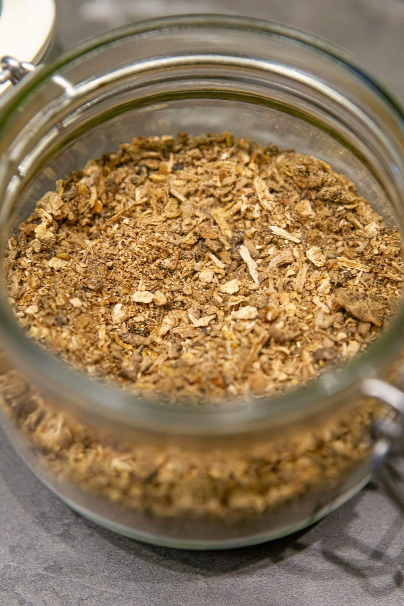 Припасенные с лета сушеные грибы измельчили до состояния крупной крошки.