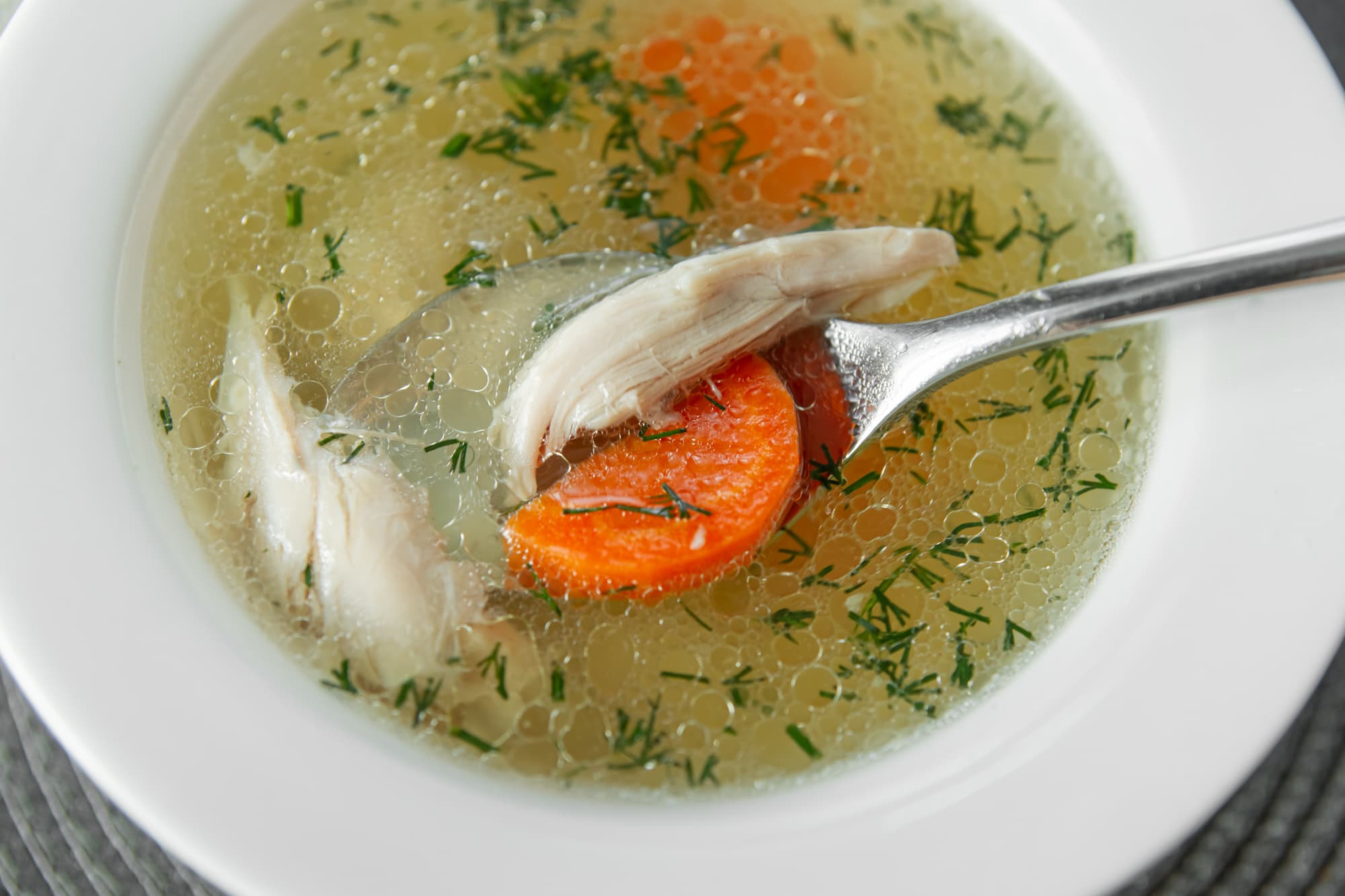 Вернули кастрюлю обратно, еще раз включили 9-й уровень нагрева, подождали минуту и после закипания уменьшили мощность до 2. Едва заметное кипение происходило стабильно без повышения и понижения температуры, и в итоге мы получили вкуснейший наваристый бульон.