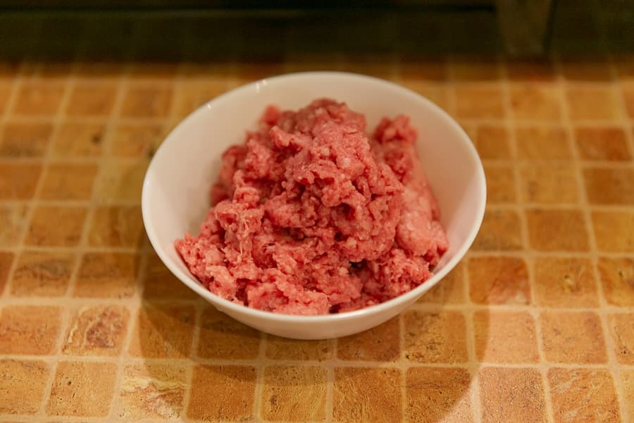 Для первого и традиционного теста мы взяли комок замороженного фарша из свинины и говядины (50% на 50%) и поместили в камеру, установив режим разморозки по весу. Печь решила, что на это уйдет 20 минут 30 секунд.