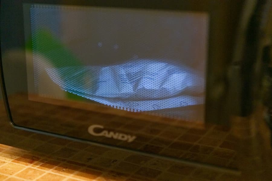 Сигналов в процессе микроволновка не издавала, поэтому через 10 минут мы сами открыли дверцу и проверили ситуацию внутри.