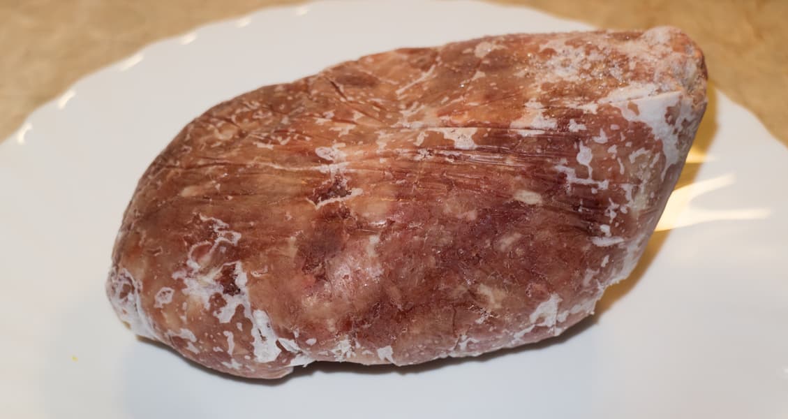 Посередине цикла раздались сигналы, мы вынули фарш, сняли с него разморозившуюся часть и перевернули кусочки. В конце работы получили отличный фарш, без обычных для разморозки в микроволновой печи фрагментов свернувшегося белка или даже запекшегося мяса — абсолютно чистый фарш, прохладный, но безо льда.