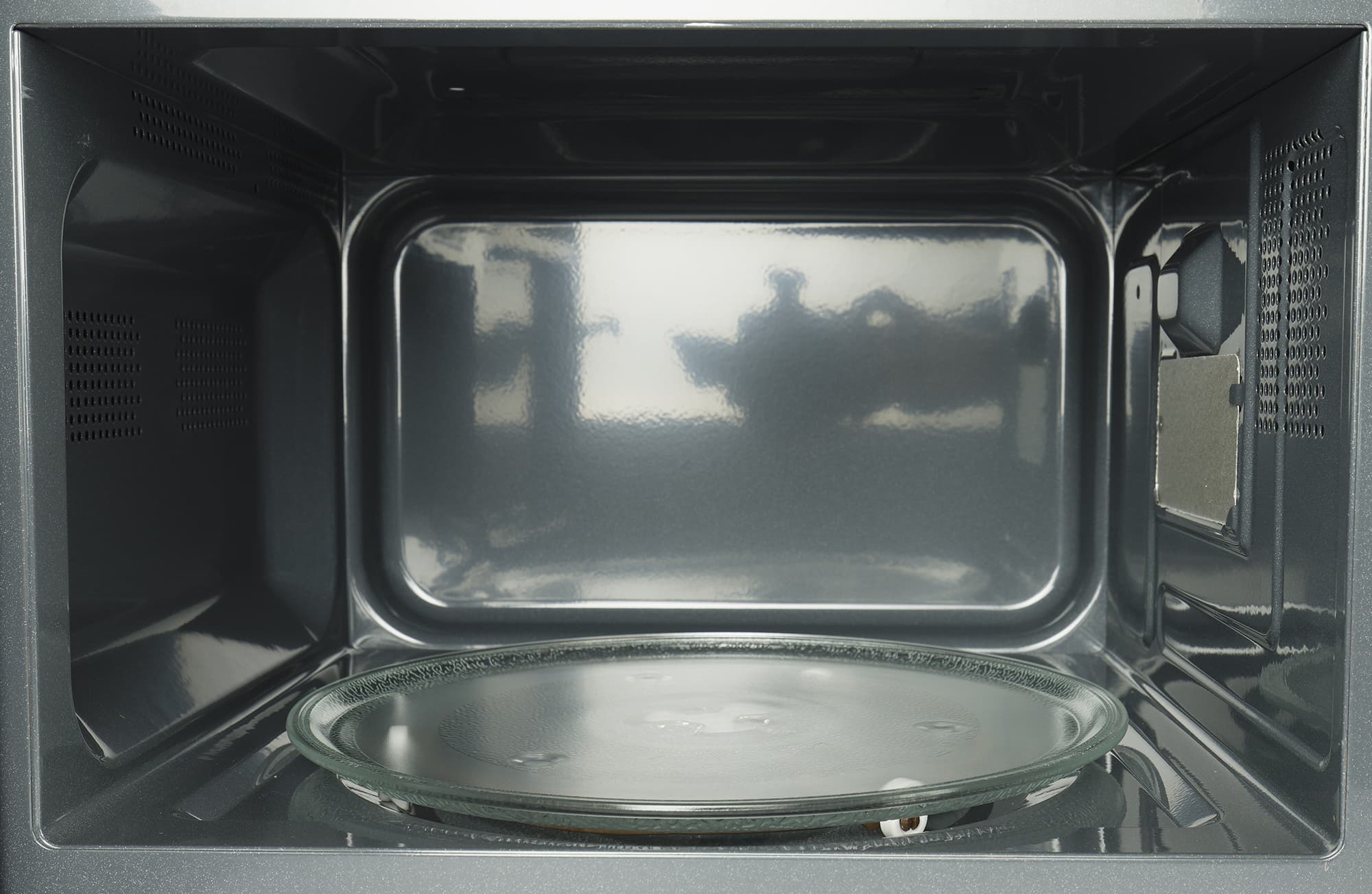 Снаружи протирали печь влажной и сухой тканью — это позволяло удалить и загрязнения от пищи, и следы от жирных рук, касающихся стенок и дверцы печи. Внутреннюю камеру чистили точно также. Остатки пищи необходимо удалять, а печь регулярно протирать, чтобы загрязнения не скапливались. Поворотный столик и роликовое кольцо следует регулярно мыть. Оба аксессуара можно очищать в посудомоечной машине.