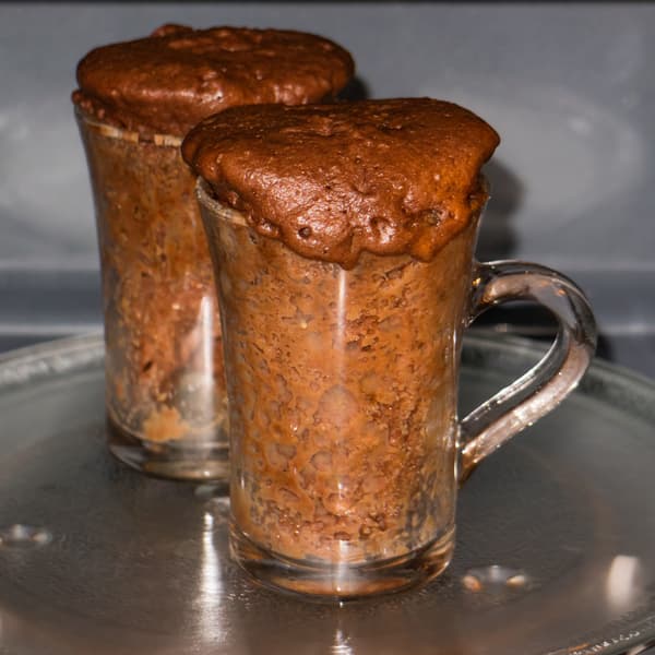 Пшеничная мука — 4 ст. ложки, сахар — 2 ст. ложки, какао-порошок — 1-2 ст. ложки, разрыхлитель — 0,25 ч. ложки, соль — щепотка, яйцо — 1 шт., кефир — 3 ст. ложки, растительное масло — 2 ст. ложки