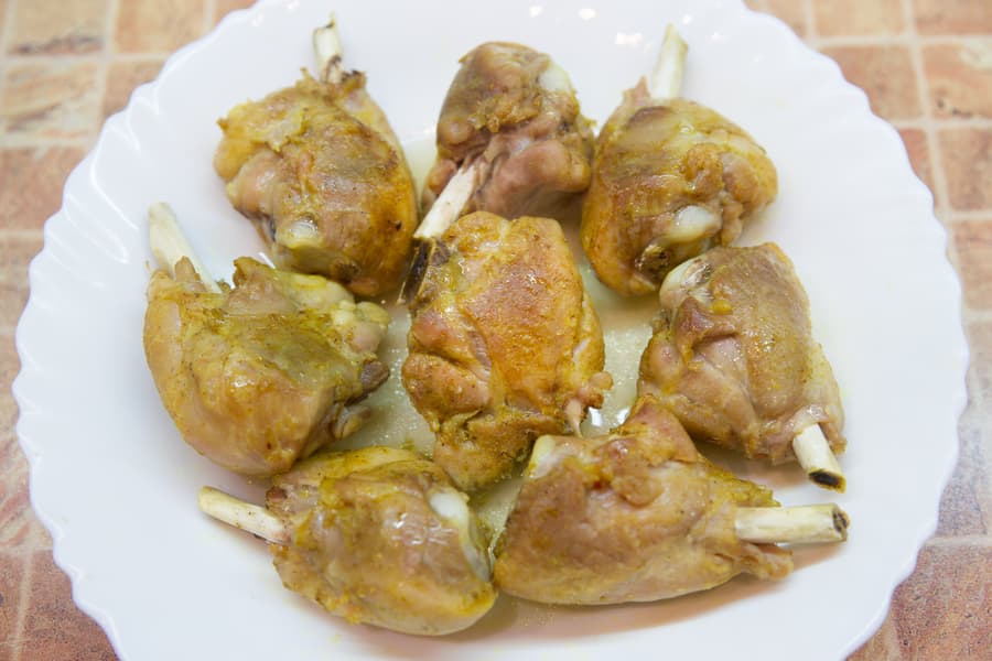 Включили гриль на 10 минут. В середине цикла перевернули ножки и таким образом получили легкую подрумяненную корочку с обеих сторон.