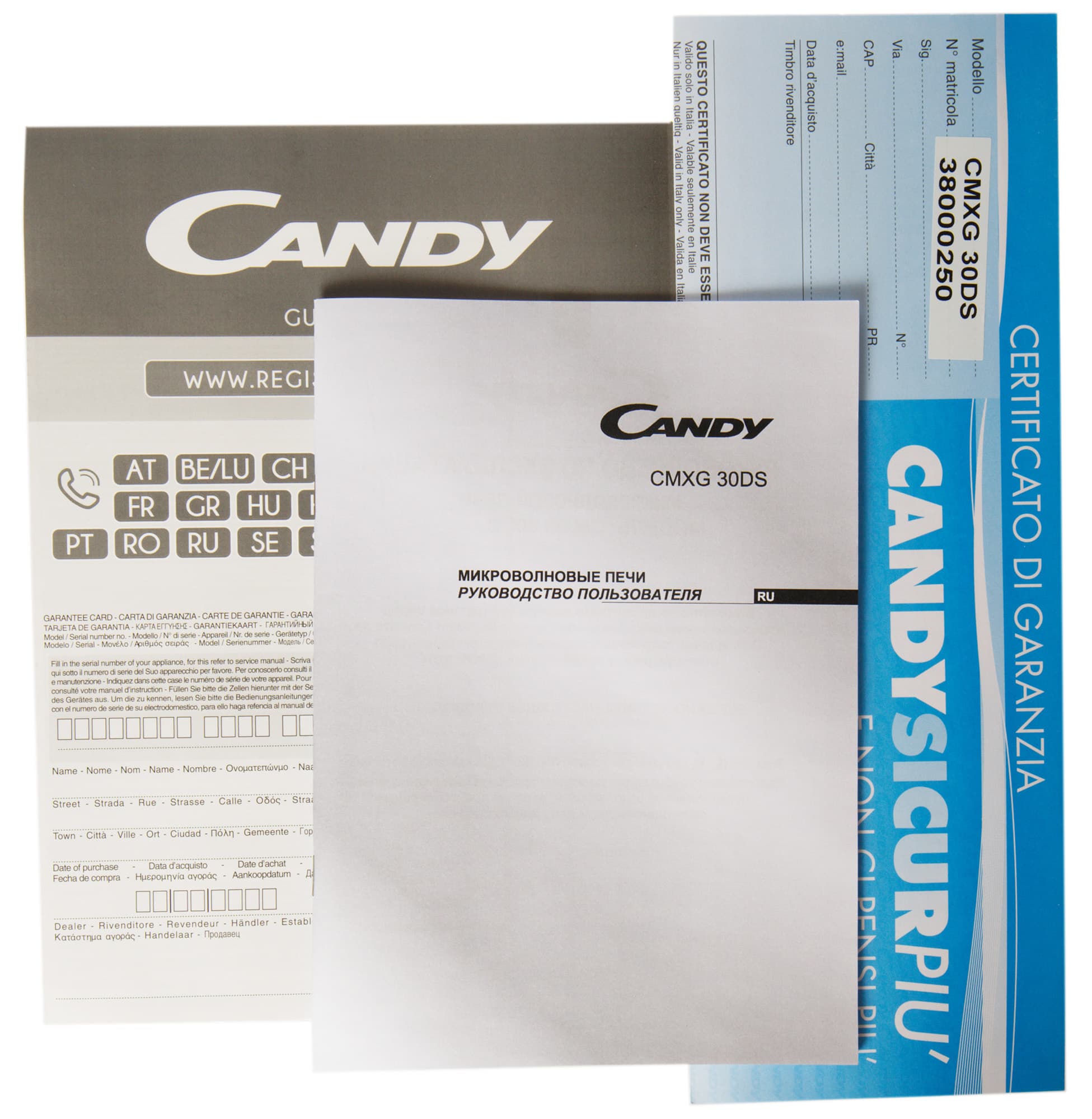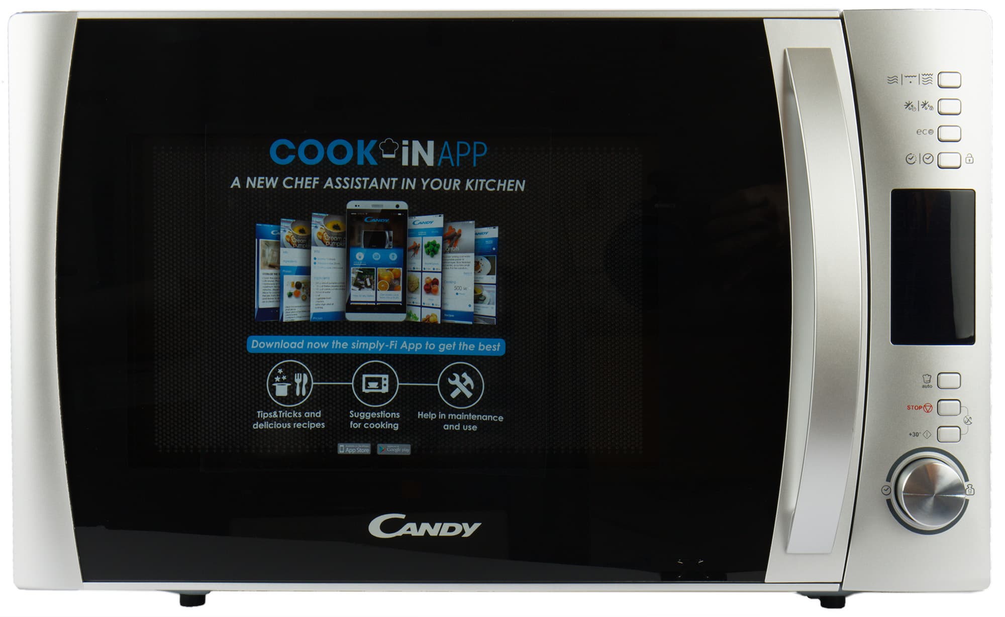 Candy CMXG 30DS — микроволновая печь большого объема с функцией гриля. Производитель одарил ее пятью уровнями мощности и 40 автоматическими программами, позволяющими подобрать режим приготовления для множества блюд. Также у нее заявлены блокировка от детей, беззвучный режим, режимы детского и здорового питания.