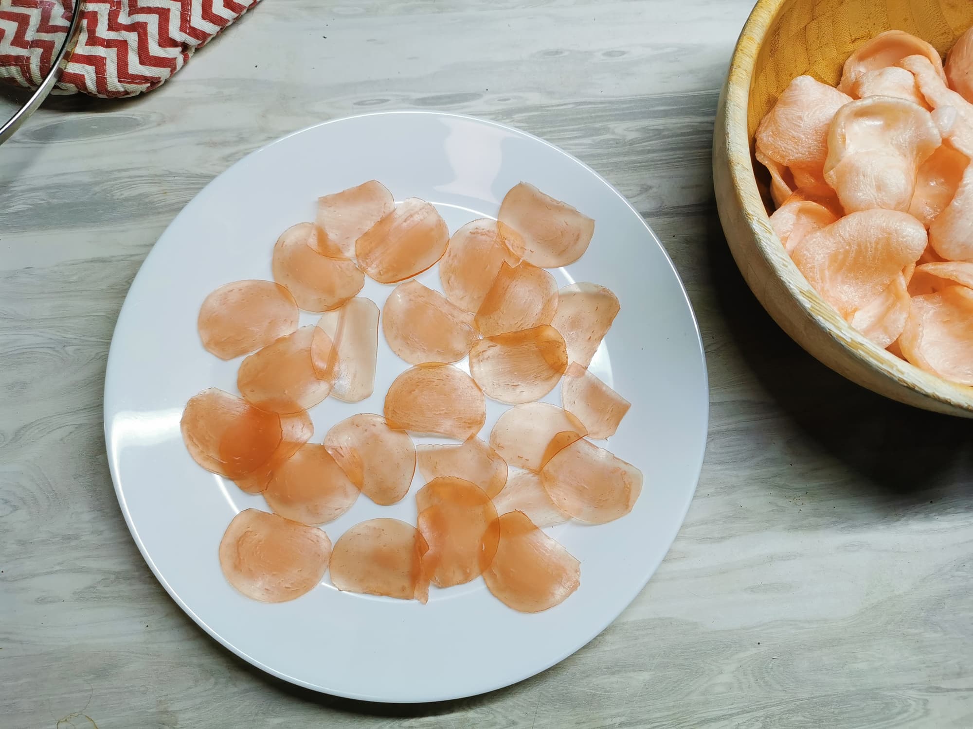 Чипсы представляют собой плоские, по виду пластиковые, прозрачные лепестки крахмала с добавками.