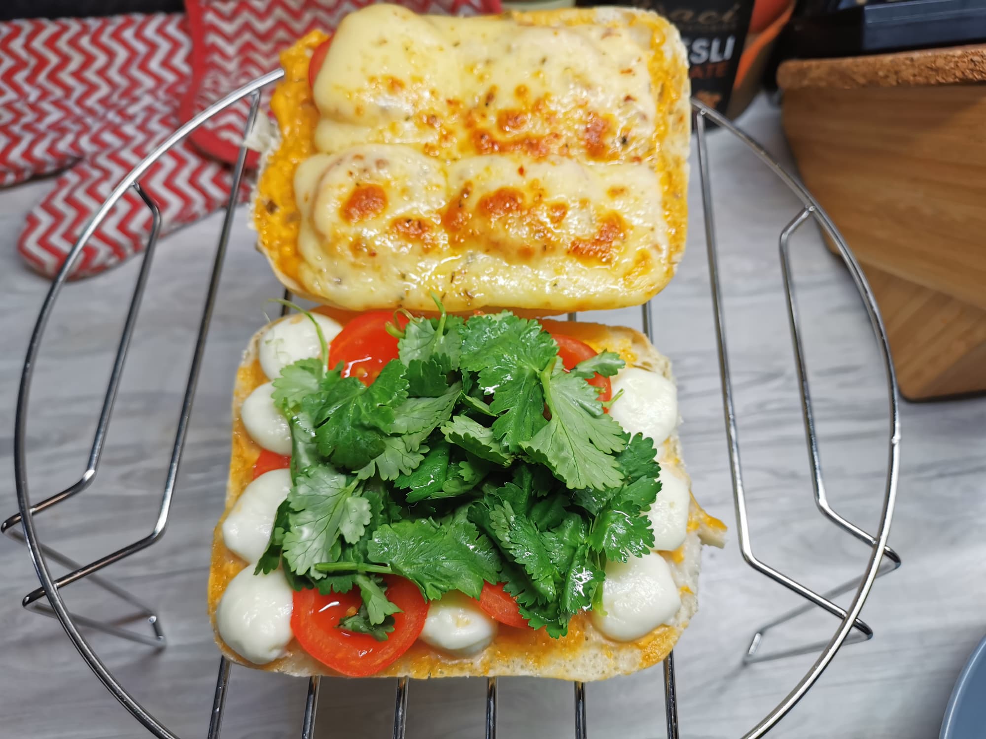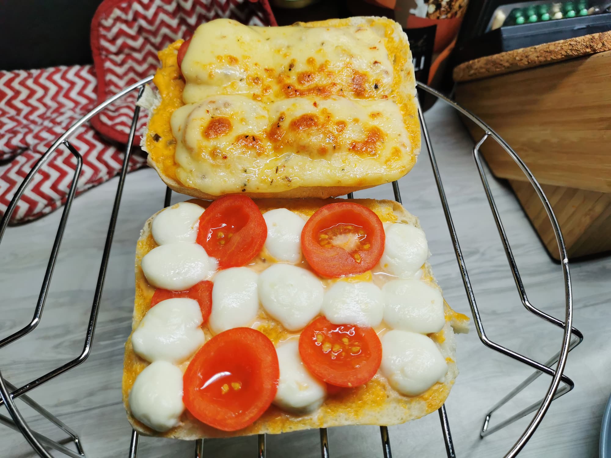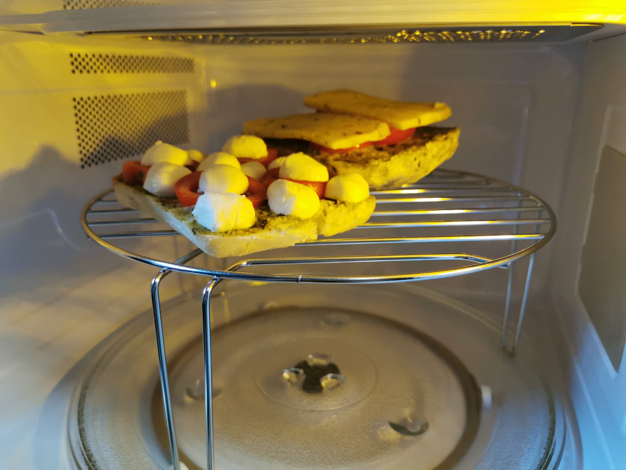 За отведенное время гриль отлично прогрел хлеб и томаты, размягчил моцареллу, расплавил и подрумянил сыр.