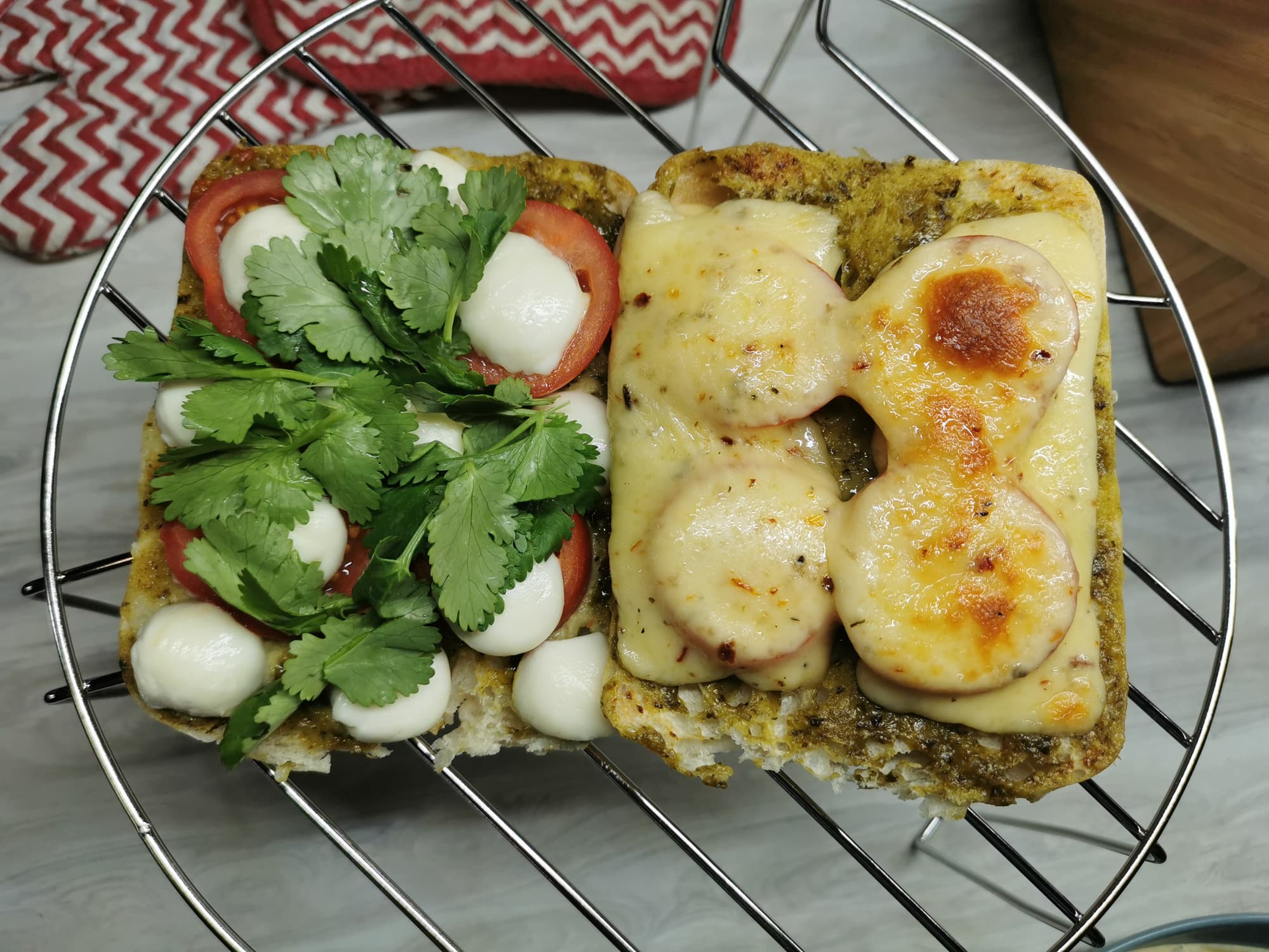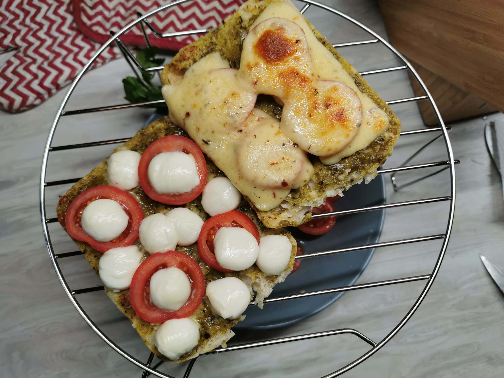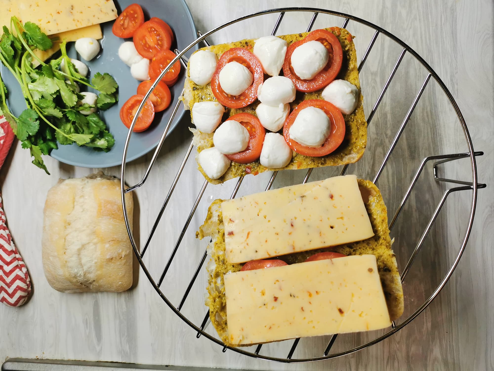 За отведенное время гриль отлично прогрел хлеб и томаты, размягчил моцареллу, расплавил и подрумянил сыр.