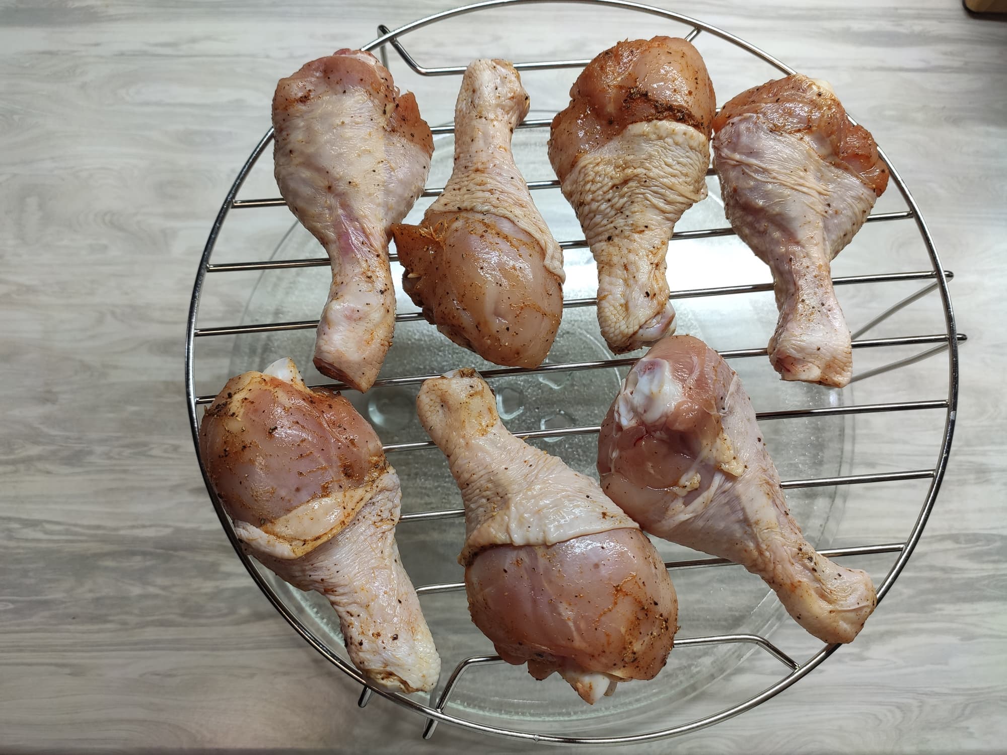 Для тестирования режима микроволны + гриль мы выбрали простое и аппетитное блюдо — куриные ножки со специями.