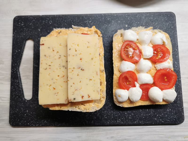 Второй сэндвич мы также отправили в печь на 5 минут в режиме гриль.