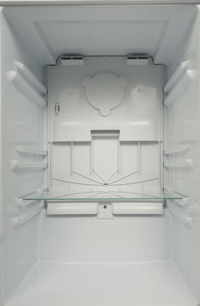 Внутри холодильного отделения — три полки из закаленного стекла. Четвертая, нижняя, является одновременно и крышкой ящика для овощей и фруктов.