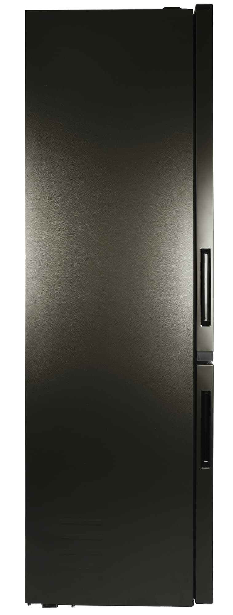 Холодильник оформлен в темно-серой гамме: матовые дверцы и стенки цвета «черный обсидиан» отлично впишутся в любой интерьер. Производитель также предлагает эту модель в черном, золотистом, бежевом, серебристом и традиционном белом вариантах исполнения. Дизайн прибора строг и аскетичен: никаких украшений, кроме логотипа Candy, на дверцах нет, индикаторы и элементы управления убраны внутрь холодильной камеры.