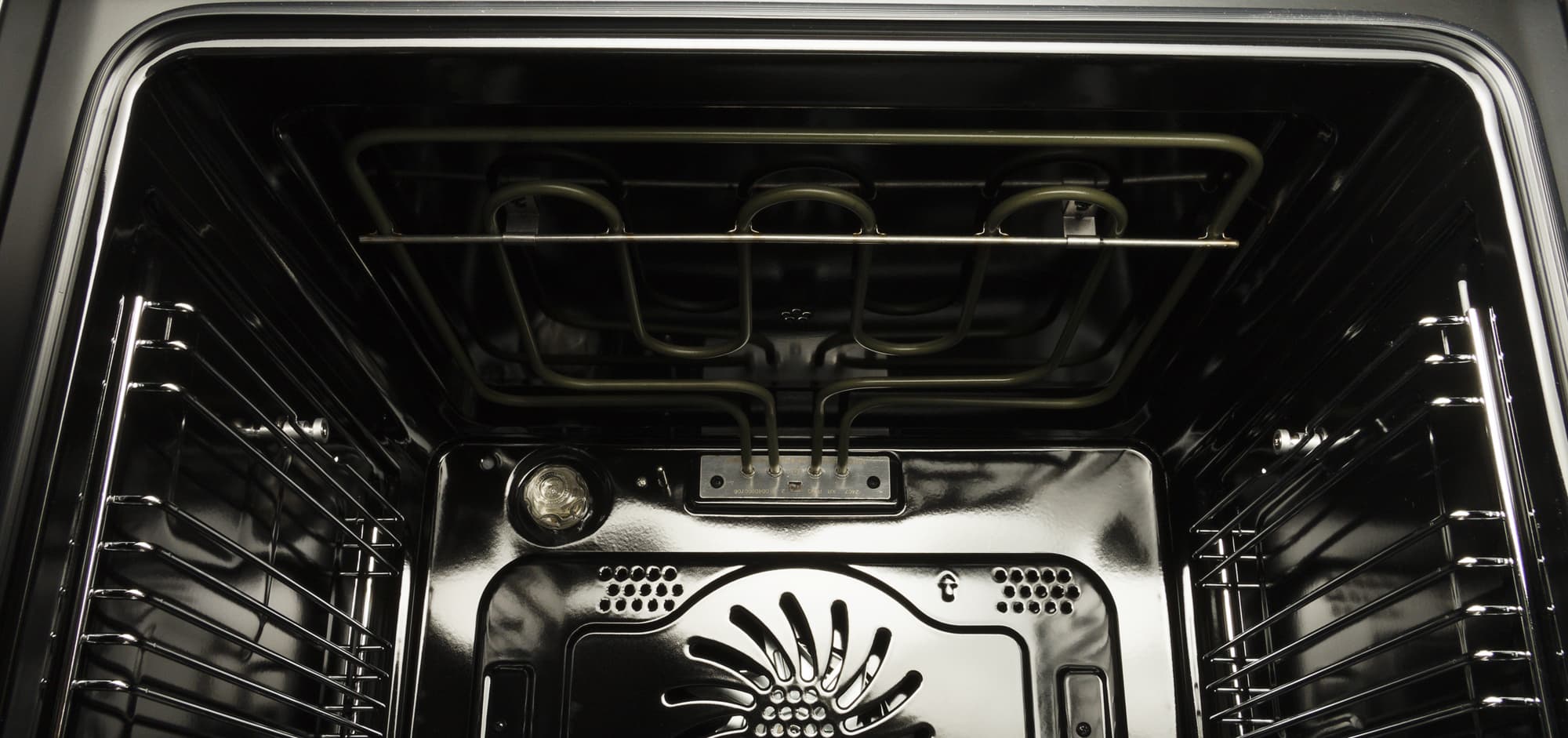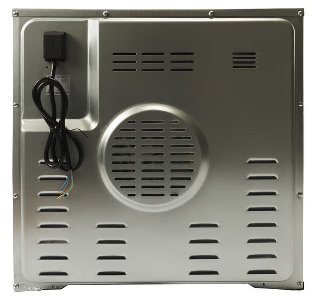 Сверху располагается тэн гриля, а по центру задней стенки — вентилятор конвекции. В левом верхнем углу находится лампа накаливания, освещающая камеру во время работы.