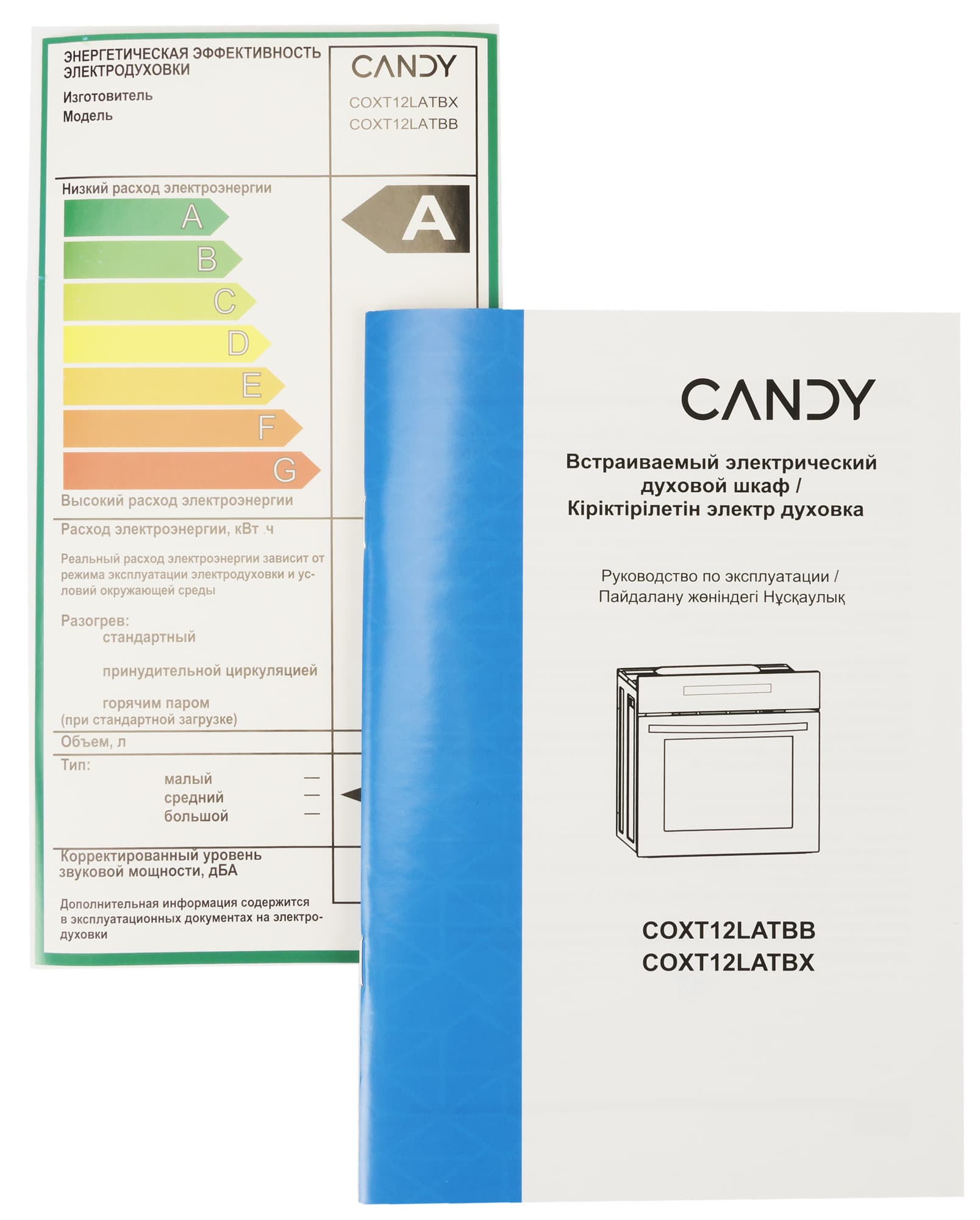 Духовой шкаф Candy COXT12LATBB сочетает стильный дизайн, отличную эргономику, широкий диапазон нагрева, все необходимые функции и режимы для комфортного приготовления блюд любой сложности.