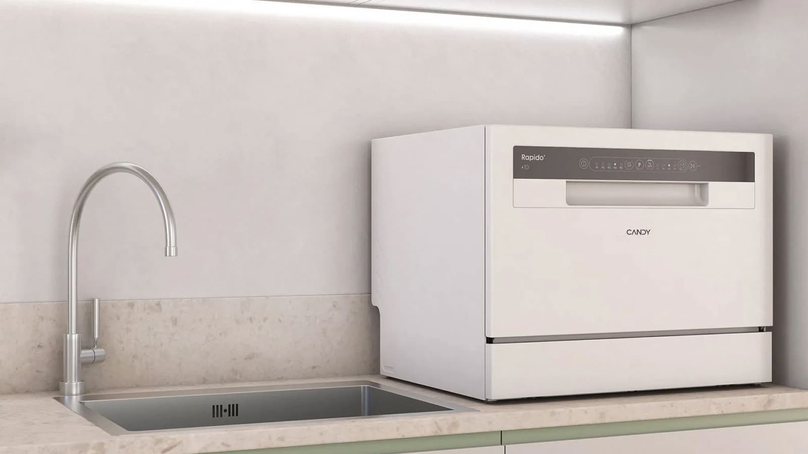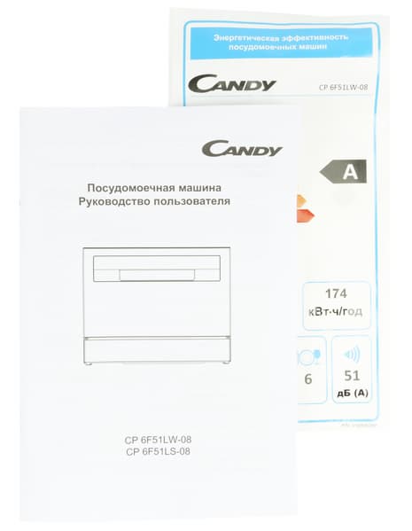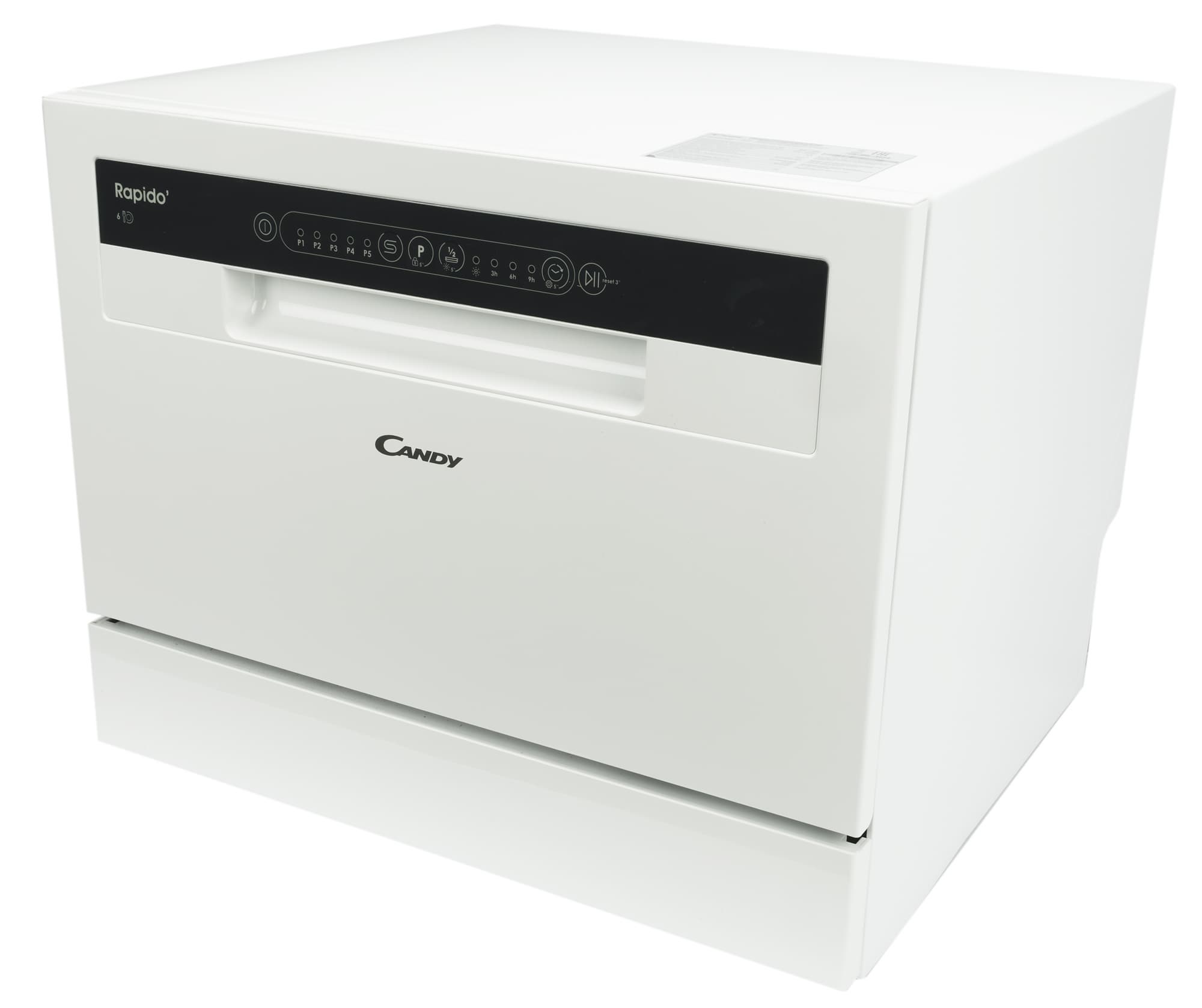 Если встроить посудомоечную машину в кухонный гарнитур или поставить полноразмерную отдельностоящую модель возможности нет, а мыть посуду руками совсем не хочется, есть решение — компактное настольное устройство, такое как Candy CP 6F51LW-08.